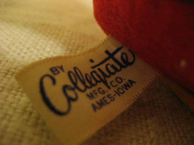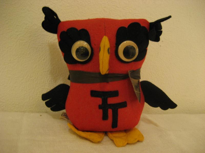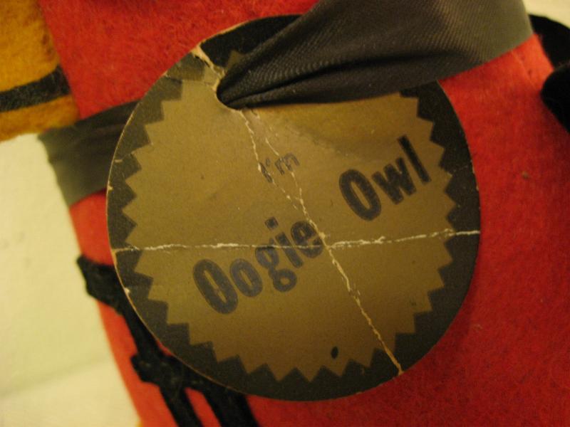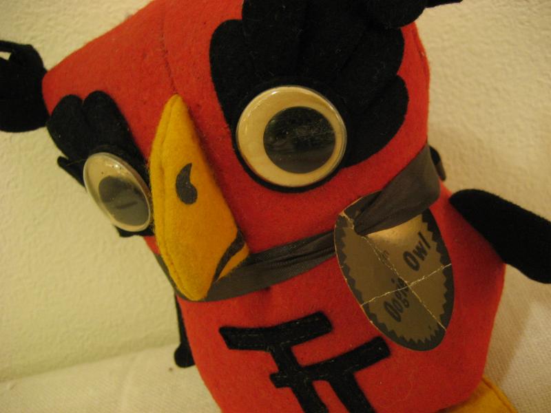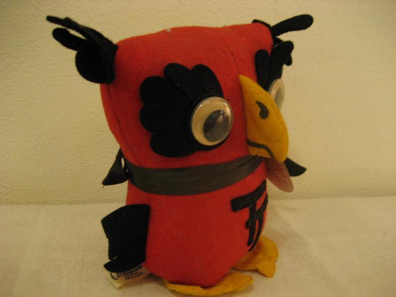USA 当時、アメリカの大学やハイスクール、クラブチームなどのマスコットキャラクターとして作られていたぬいぐるみ。カレッジイニシャルはフェルトパッチで "TT "、ウールフェルトで作られたフクロウでペーパータグに" I'm Oogie Owl "。 上記写真Collegiate Mfgのカタログにも掲載されているタイプのカラー違い。レアです!