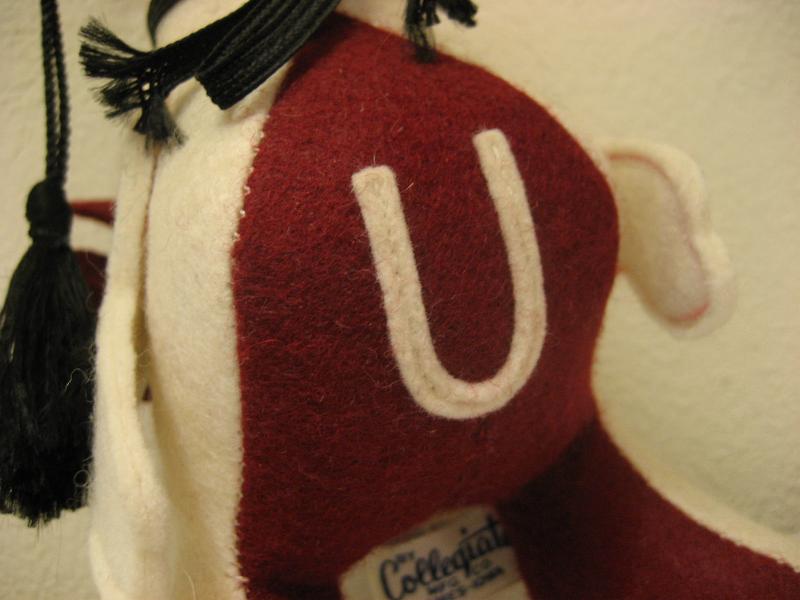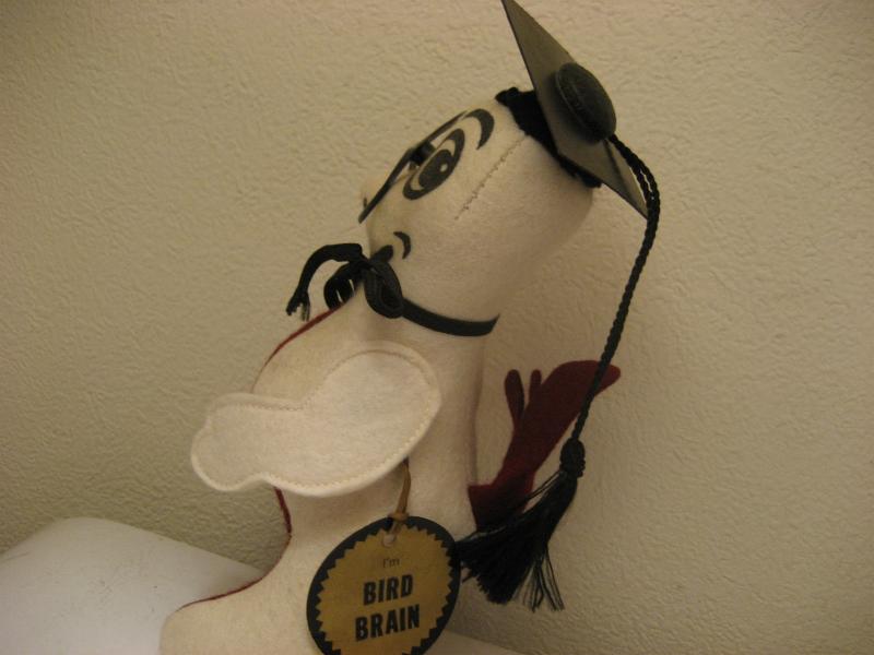 | ビンテージカレッジマスコットドール / 40−50年代 Collegiate Mfg. USA 当時、アメリカの大学やハイスクール、クラブチームなどのマスコットキャラクターとして作られていたぬいぐるみ。カレッジイニシャルはフェルトパッチで "U "、ウールフェルトで作られたバードドール。昔のカレッジハットをかぶりメガネをかけた顔がとてもスマートそう! ペーパータグ付き。上記写真Collegiate Mfgのカタログにも掲載されているタイプ。レアです!