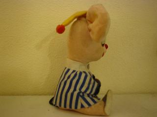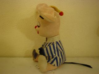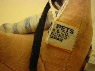 & CO./ PROD. OF JAPAN. ストライプのパジャマを着てイエローのナイトキャップをかぶった、とっても眠そうなパジャママウスです。今にもひっくり返って寝てしまいそう・・・ 足元にグレーのスリッパを履いて細かく演出されてると感心してしまいます! 50-70年代くらいまでアメリカのメーカーが日本や台湾などで作らせていたぬいぐるみです。 ■モダンペッツや復刻ドリペなどいろいろ出ましたが、やはりビンテージ物はなんともいえない味があって良いですよ!微妙な当時のフェルトの風合いや絶妙なカラーマッチングなど・・・やはりオリジナルならではです! |
