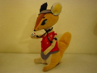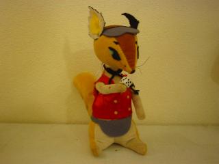& CO./ PROD. OF JAPAN. サイコロを持ったギャンブラーフォックス。赤いベストに胸元にはリボンタイ。 50-70年代くらいまでアメリカのメーカーが日本や台湾などで作らせていたぬいぐるみです。 ■モダンペッツや復刻ドリペなどいろいろ出ましたが、やはりビンテージ物はなんともいえない味があって良いですよ!微妙な当時のフェルトの風合いや絶妙なカラーマッチングなど・・・やはりオリジナルならではです! |