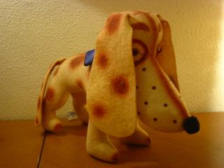 | ビンテージ カレッジマスコットドール / 40−50年代 アメリカの大学やハイスクールなどのマスコットキャラクターとして作られていた、カレッジイニシャル " UCSB " のウールフェルトで作られたカレッジマスコットドッグです。首のペーパータグに名前が付いていて、彼は " I'm PERKY "。ちょっと怖めな顔が古さを感じさせます。 |