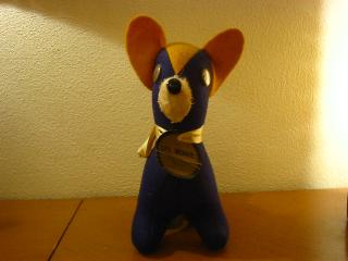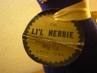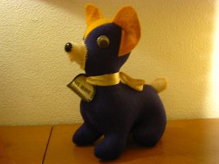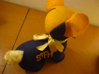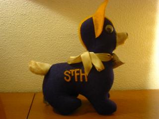 | ビンテージ カレッジマスコットドール / 50-60年代 アメリカの大学やハイスクールなどのマスコットキャラクターとして作られていた、カレッジイニシャル " StFH " のウールフェルトで作られたカレッジマスコットドッグです。首のペーパータグに名前が付いていて、彼は " I'm LI'L HERBIE "。 |