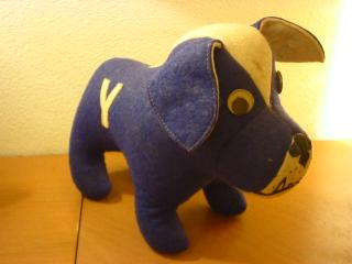 | ビンテージ カレッジマスコットドール / 40−50年代 アメリカの大学やハイスクールなどのマスコットキャラクターとして作られていたカレッジイニシャル " Y "、 おそらくYALE大学のウールフェルトで作られたカレッジマスコットのブルドッグです。ちょっととぼけた顔がカワイイです! |