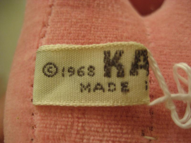 | ビンテージ カーマー / 1968 KAMAR, MADE IN JAPAN. / 1968年製 ドリペなどと同様50-70年代くらいまでアメリカのメーカーが日本や台湾などで作らせていたぬいぐるみです。 ■モダンペッツや復刻ドリペなどいろいろ出ましたが、やはりビンテージ物はなんともいえない味があって良いですよ!微妙な当時のフェルトの風合いや絶妙なカラーマッチングなど・・・やはりオリジナルならではです! |