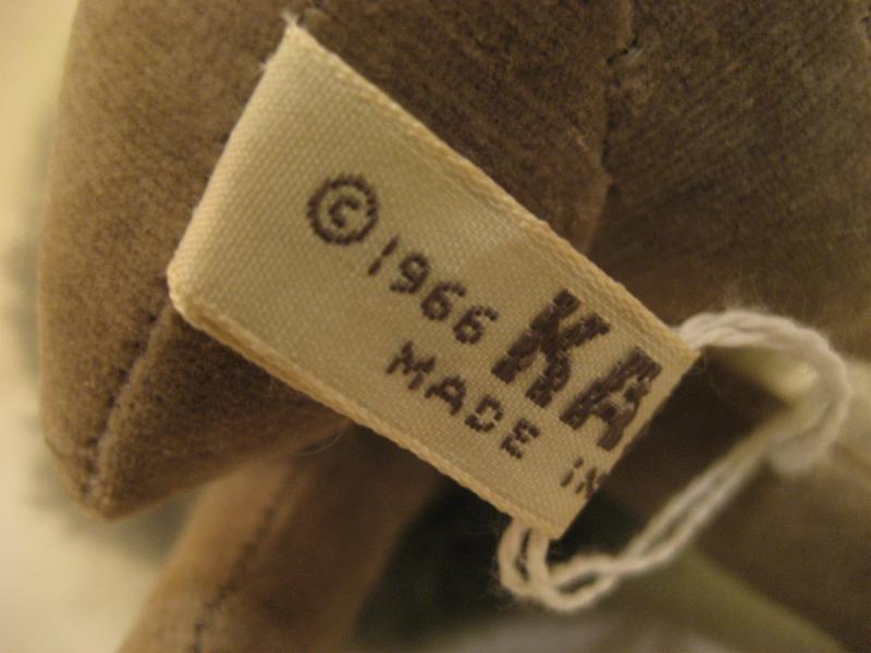 | ビンテージ カーマー / 1966 KAMAR, MADE IN JAPAN. / 1966年製 プードル ドリペなどと同様50-70年代くらいまでアメリカのメーカーが日本や台湾などで作らせていたぬいぐるみです。 ■モダンペッツや復刻ドリペなどいろいろ出ましたが、やはりビンテージ物はなんともいえない味があって良いですよ!微妙な当時のフェルトの風合いや絶妙なカラーマッチングなど・・・やはりオリジナルならではです! |