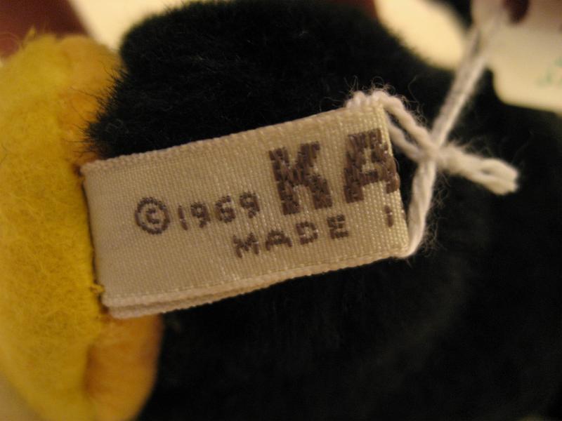 | ビンテージ カーマー / 1969 KAMAR, MADE IN JAPAN. / 1969年製 ペンギン ドリペなどと同様50-70年代くらいまでアメリカのメーカーが日本や台湾などで作らせていたぬいぐるみです。 ■モダンペッツや復刻ドリペなどいろいろ出ましたが、やはりビンテージ物はなんともいえない味があって良いですよ!微妙な当時のフェルトの風合いや絶妙なカラーマッチングなど・・・やはりオリジナルならではです! |