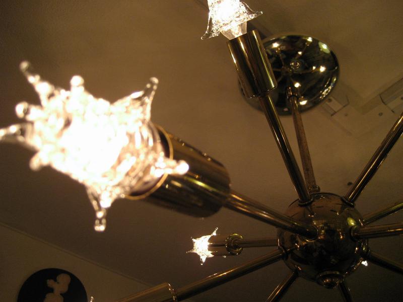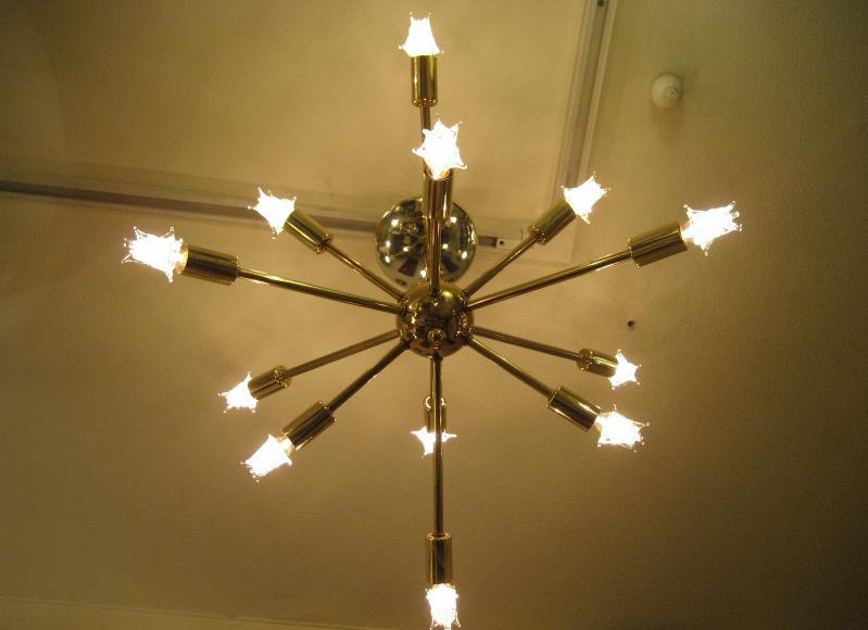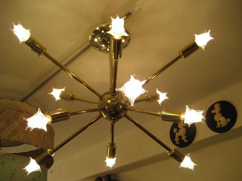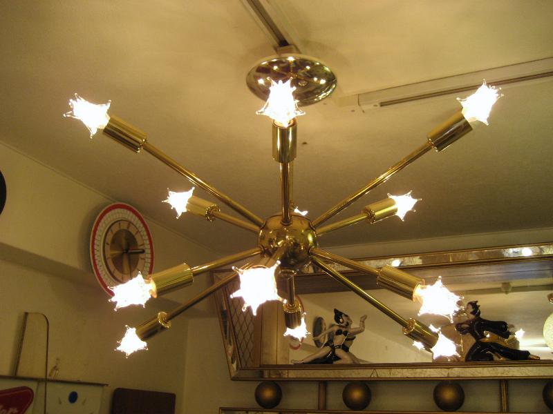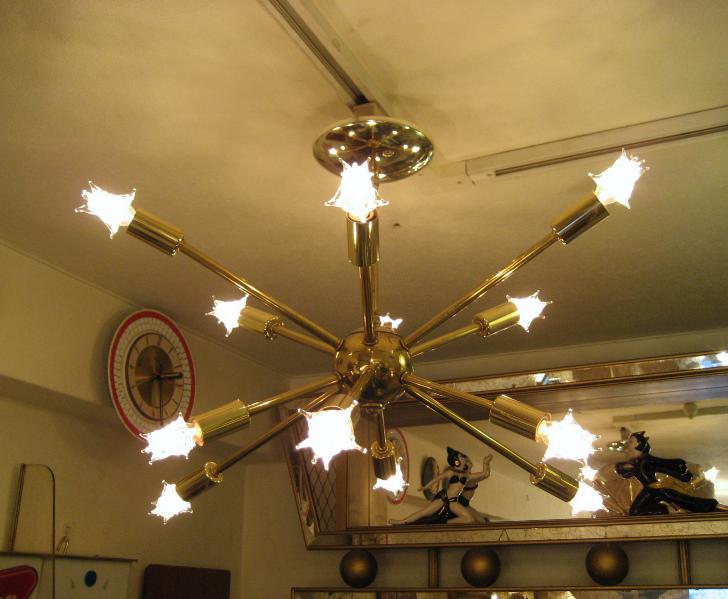 | スプートニクランプ 50年代 12灯タイプ (スター球12個付き) ビンテージスプートニクシーリングランプ / シャンデリア 12発のスプートニクです。電源は家庭用引っ掛けシーリングに交換済ですのでかんたん設置、すぐに使用できます。 スター球は現行品です。 |