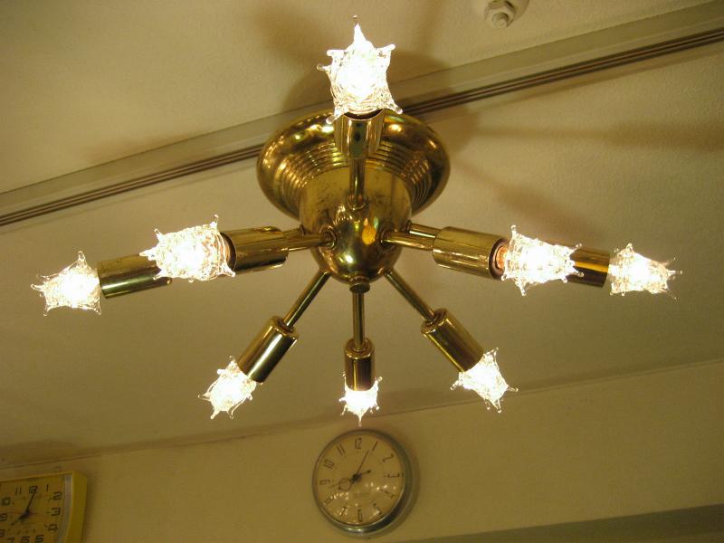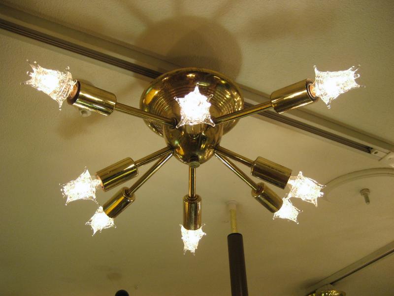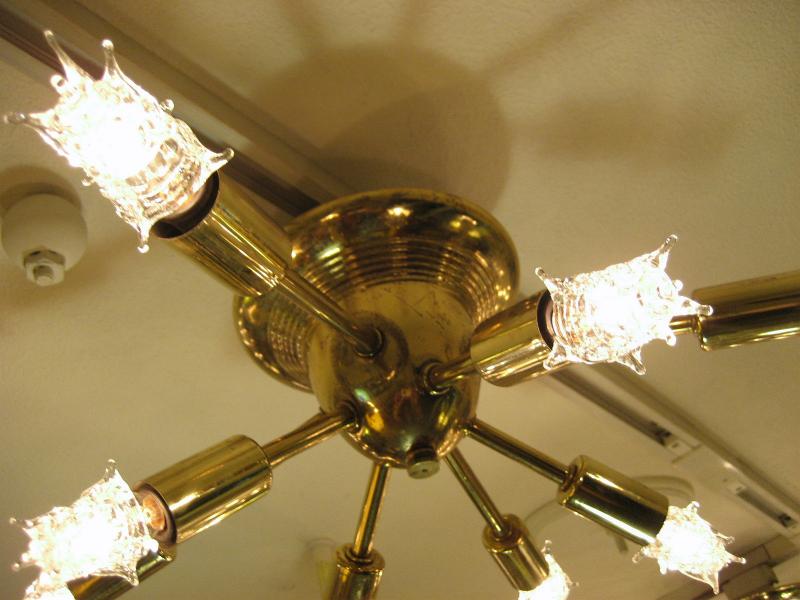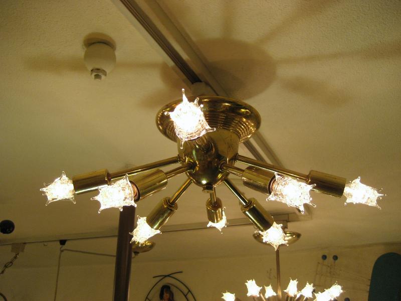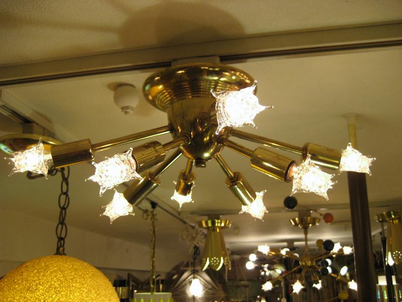 | ビンテージスプートニクシーリングランプ / 50年代 USA. 8発の天井シーリングタイプのビンテージスプートニクです。メイン照明としてももちろん、玄関やセカンド照明としてもGOODなライティングピース! 電源は引っ掛けシーリングに交換済みですのですぐに設置可能です。 |