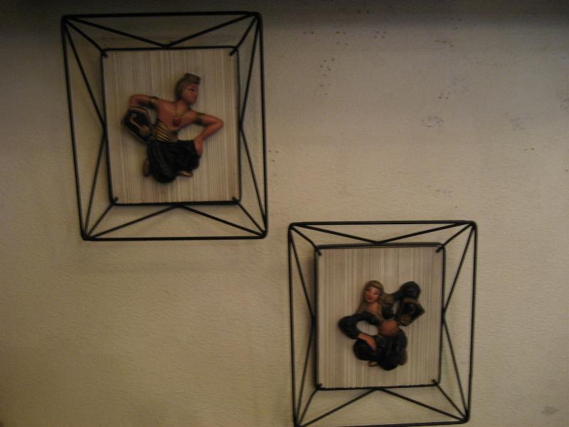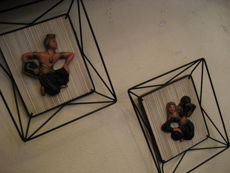 | ペア アラビアンダンサー壁掛け 50年代 USA ビンテージのウォールデコセット。クールなアイアンフレームにウッドベース、ダンサーはチョーク製。壁のアクセントにGOODなウォールピース! ブーメランシェイプのメーカータグもカッコイイです! |