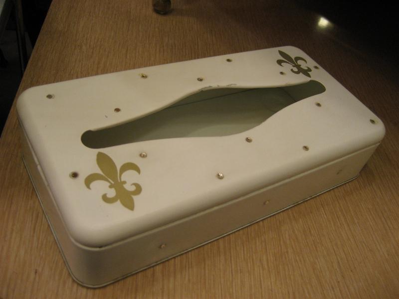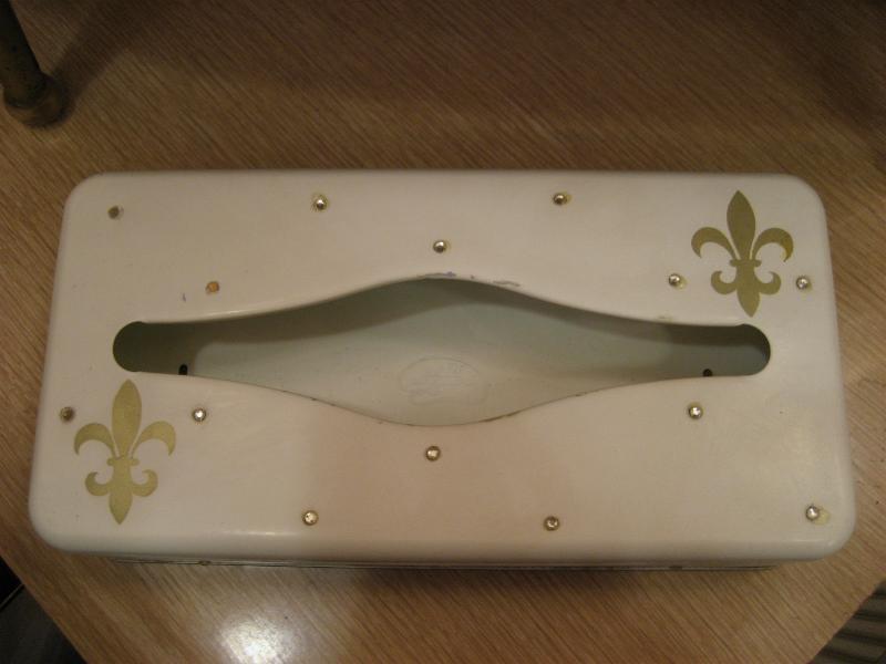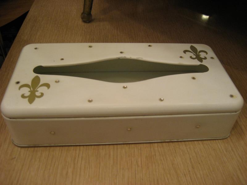 | ビンテージティッシュケース (ホルダー / ボックス) / 50-60年代 ランズバーグ製のビンテージティッシュボックス。ゴールドアクセントにラインストーンデコレーションがクールでキュートなバニティピース!壁掛け用フックホールも開いているので用途も広く便利です。 |