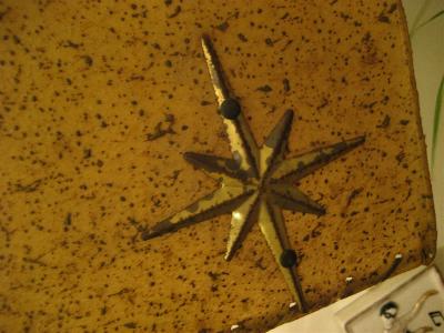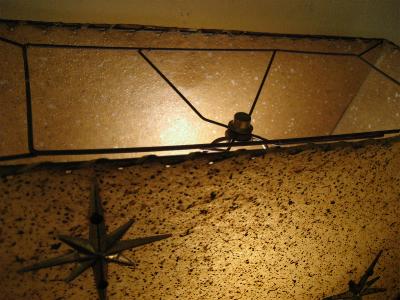 | ランプベースにはヒビやカケ・リペアなどありません。シェードのフレームとスターバースト部分に多少のサビは見られますが全体的に良いコンディションです。 | |