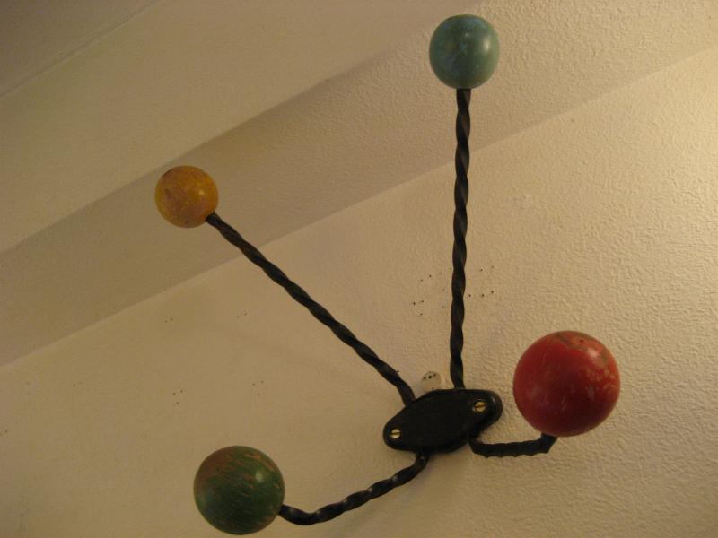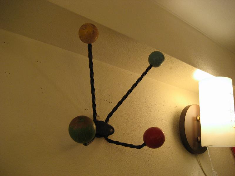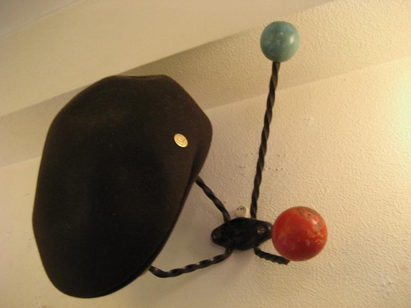 | アトミック コート&ハット ウォールハンガー / 50年代 USA ツイストブラックアイアンにカラーウッドボールアクセントのウォールハンガー。帽子やウェアなどの専用フックですが、当時はゲスト用として一時的にかけておくのにも使われたようですのでお部屋はもちろん玄関などにも良いのでは?アトミックなデザインが今に無いこだわりたいアイテムのひとつ! |