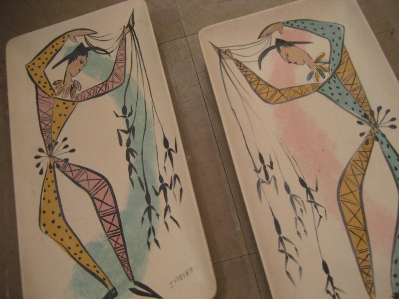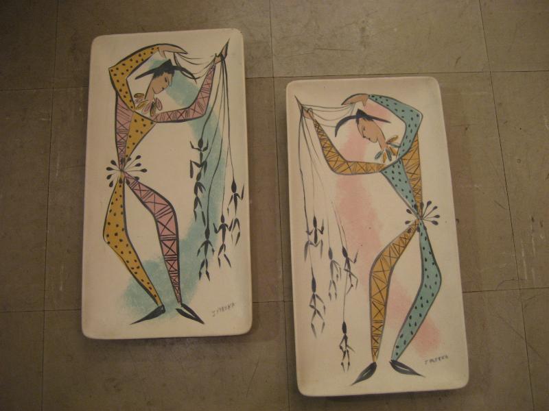 | ペアビンテージハーレクイン壁掛け 50-60年代 USA. 陶器製のイタリアンモダンアート系ハーレクインのウォールデコ。クールでモダンなミッドセンチュリーウォールピース! |