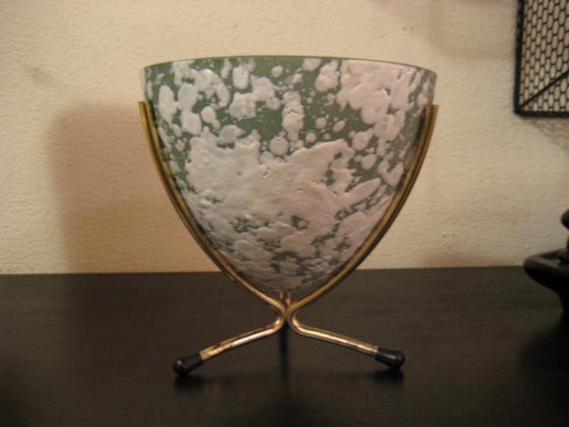 | アトミックテーブルプランター / 50年代 USA. ゴールドフレームスタンドに陶器製のプラントホルダー。ペパーミントベースにアトミックなホワイトアクセント。テーブルやシェルフディスプレイにGOODなクールピース!!! |