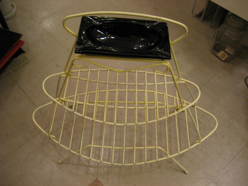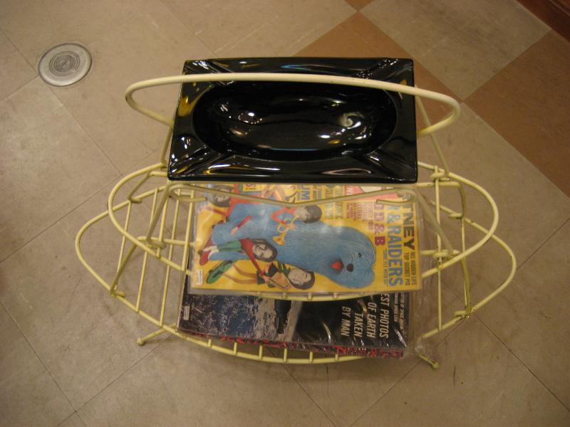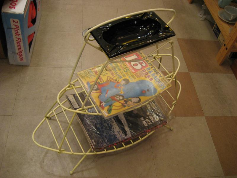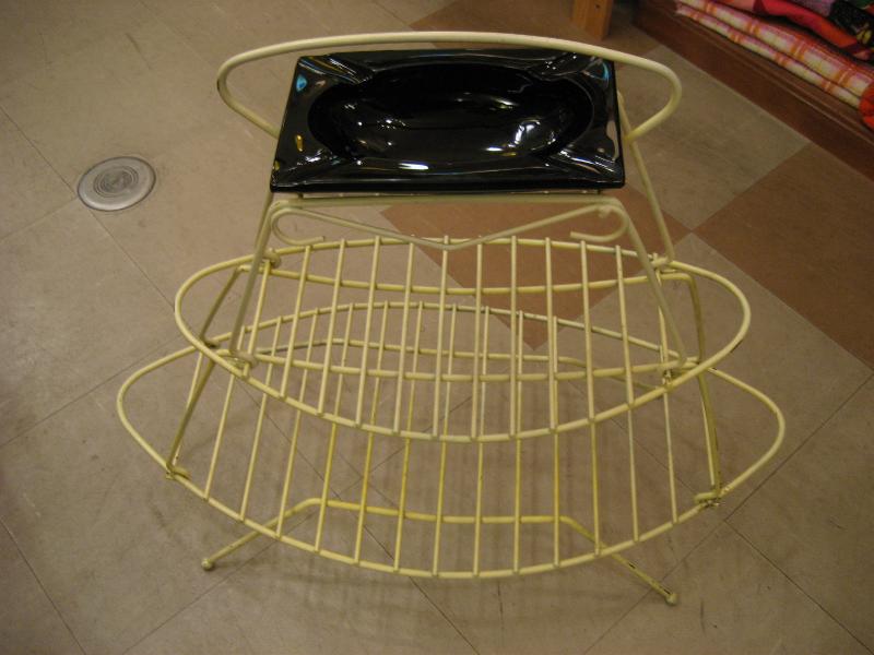 | ビンテージマガジンラック灰皿スタンド / 50年代 USA. ホワイトペイントされたアイアンメイドの2段タイプマガジンラックにブラックガラス製の灰皿がクールなフロアピース。ソファサイドやテーブルサイドで活躍する素敵なアイテム! |