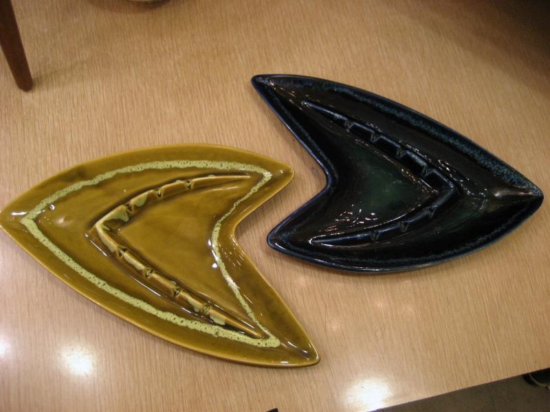 | アトミックブーメラン灰皿 / 50年代 USA. ブーメランシェイプの陶器製アッシュトレイ。長さ30cmのBIGサイズでテーブル上でクールな存在感を演出してくれるスモーキングピース! |