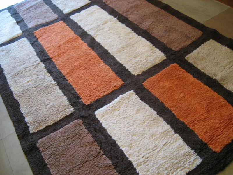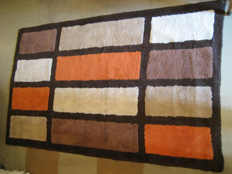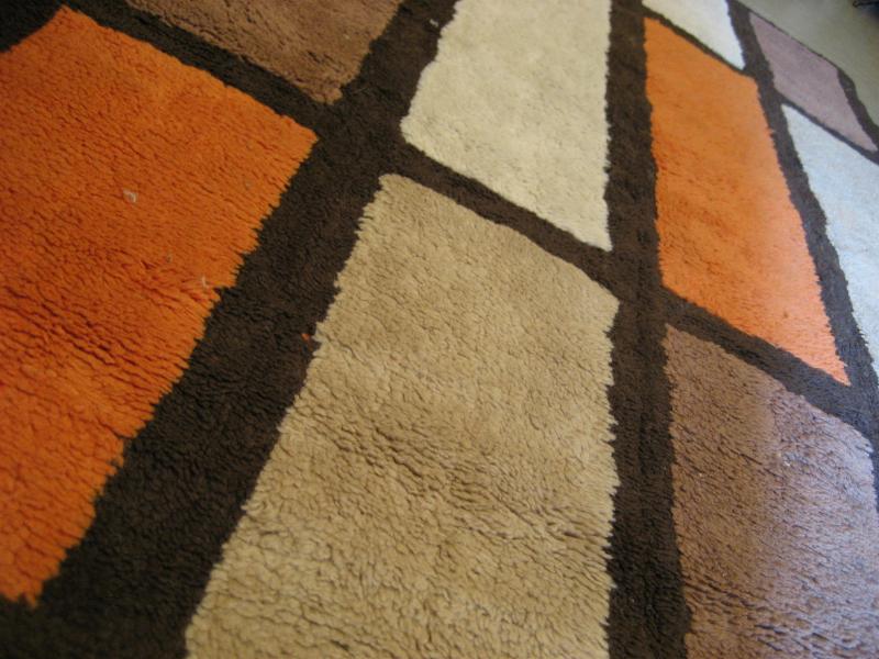 | ミッドセンチュリーモダンフロアラグ / 60-70年代 USA. アトミックスクエアデザインのモダンなビンテージフロアラグです。カラーはダークブラウンベースにアイボリー、ベージュ、オレンジ、モカブラウン。リビング等のフロアにGOODなモダンピースです! |