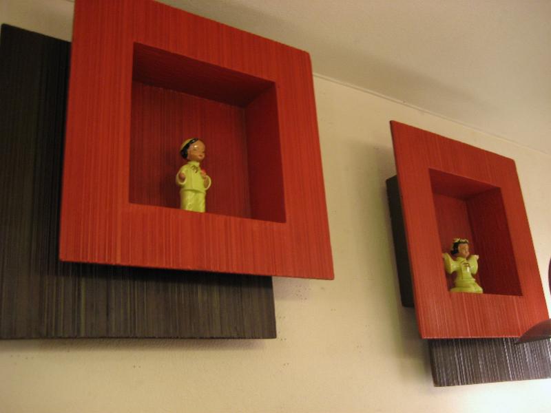 | ペアビンテージシャドウボックスウォールシェルフ / 50年代 ツートーンカラーのダブルスクエアタイプウォールシェルフ。アトミックなデザインとオリエンタルなカラーリングが超クール!置物などのディスプレイにGOODなウォールピースです。 |