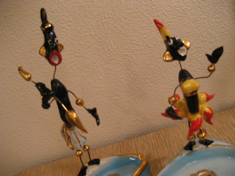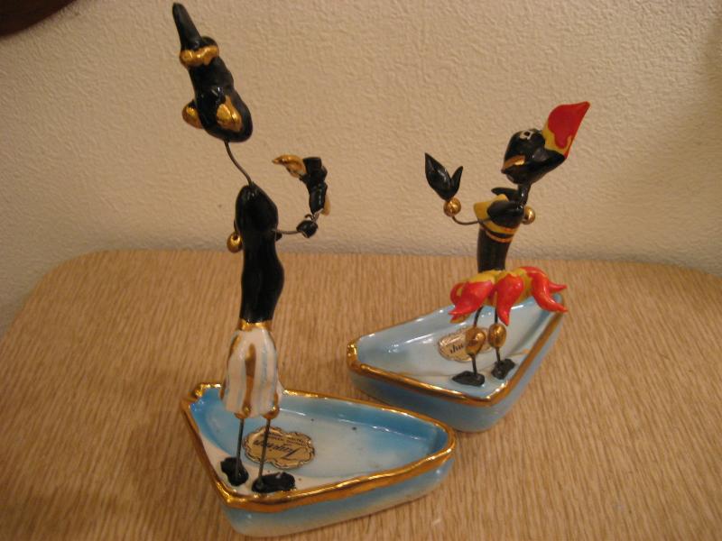 | ペアビンテージアフリカンダンサー置物/灰皿 / 40-50年代 USA. MADE IN ITALY イタリアンミッドセンチュリーの灰皿付きアフリカンダンサーの置物ペアです。アメリカのセラミックメーカーがイタリアから当時輸入していた物のようです。アメーバブーメランシェイプのアッシュトレイにワイヤーベースのダンサーデコレーションがクールでキュート!ディスプレイや小物入れに使ってもGOOD!デッドストック(未使用)です。 |