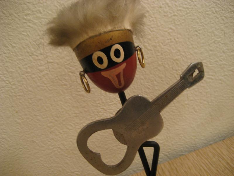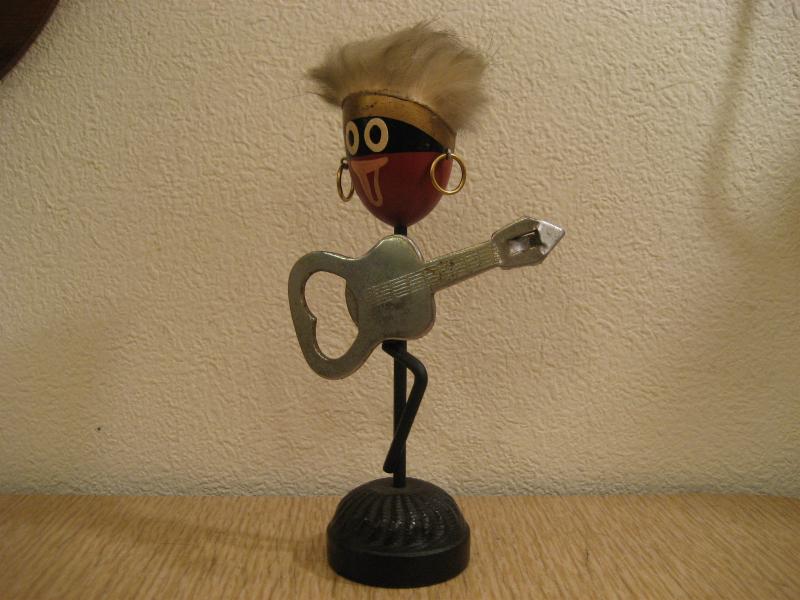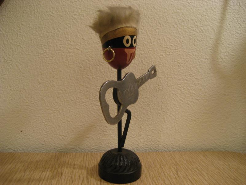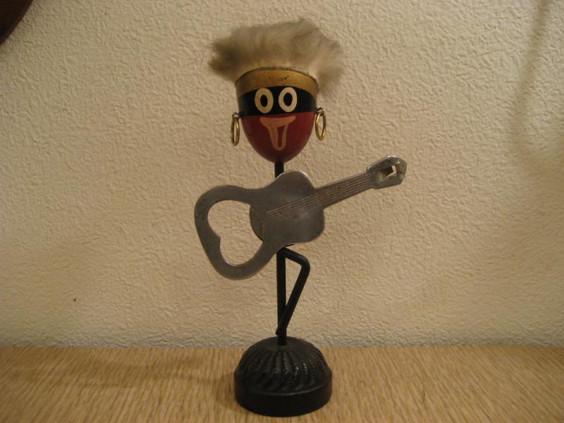 | ビンテージアフリカン置物/バーウェア 50年代 USA. ギターの栓抜きが磁石でくっついているレトロなバーウェア。アフリカンのおどけたフェイスがGOODなリラックスデコレーションピース! |
