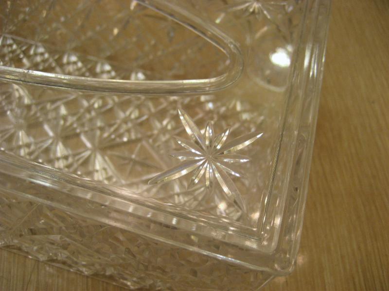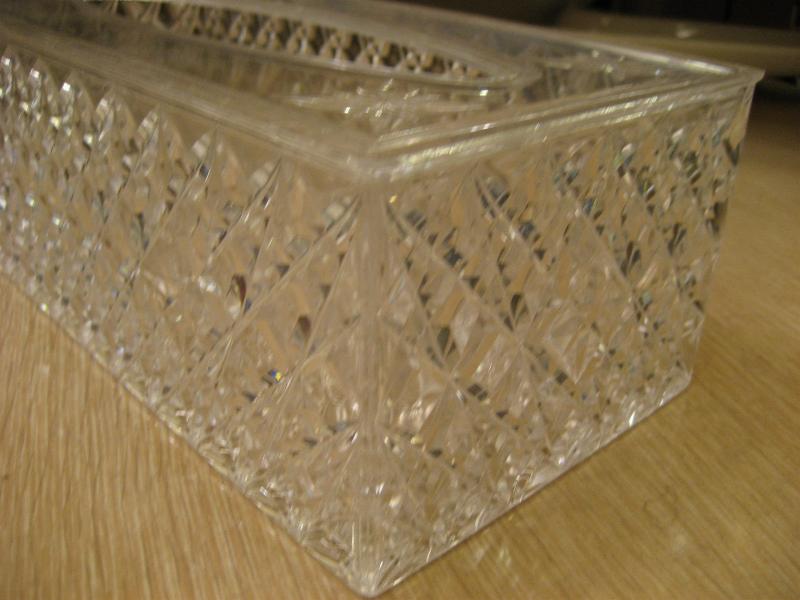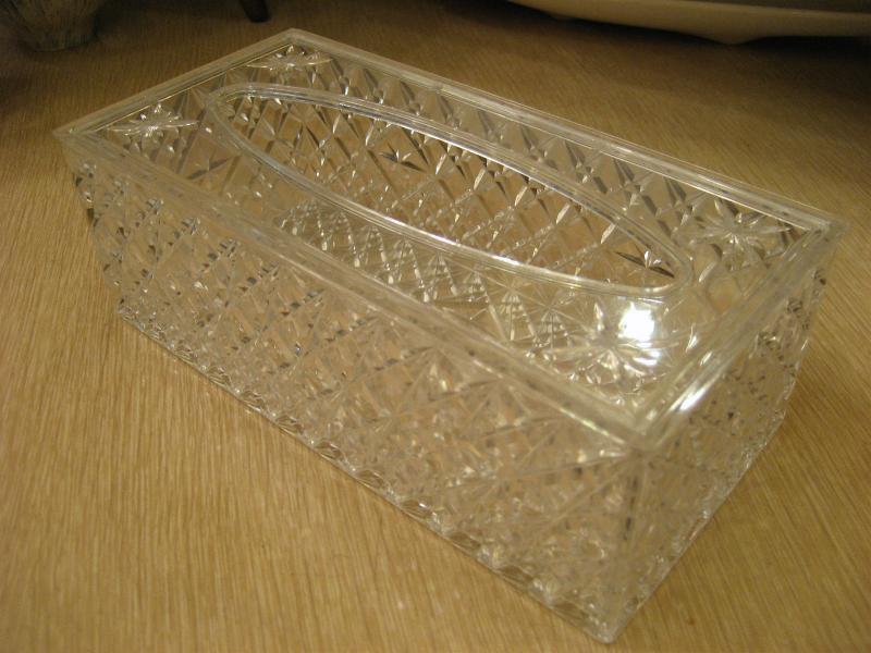 | ビンテージティッシュケース / 50-60年代 クリアカラーのビンテージルーサイトティッシュケース。側面はガラスのようにカッティングされたデザインでトップカバーのコーナーにはスターバーストアクセント。深いタイプでGOOD&キュートなバニティピース! |
