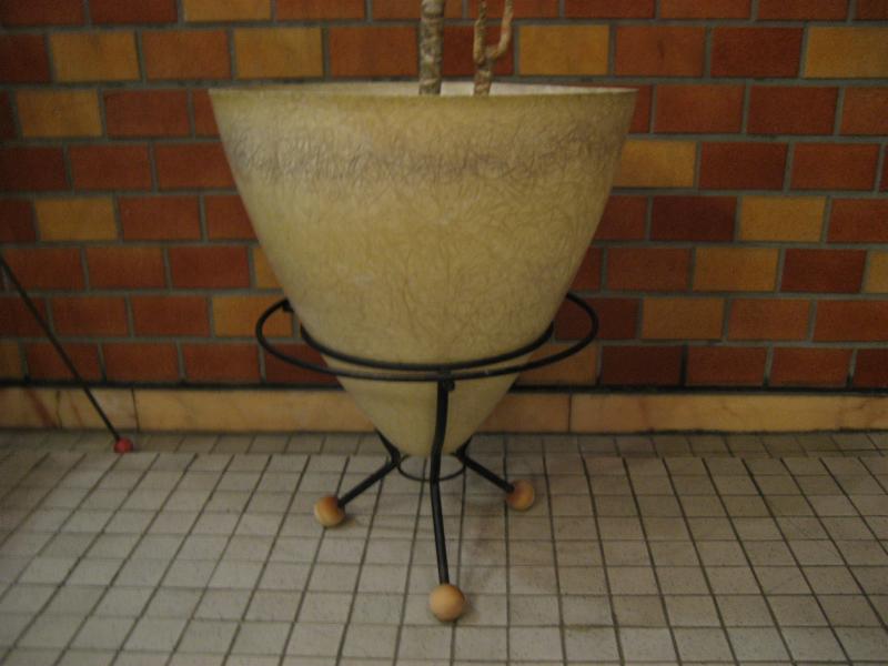 | ビンテージアトミックプランター / 50年代 USA. ブラックアイアンフレームスタンドにファイバーグラス製のクールポット。スタンドレッグにウッドボールデコレーション付き。フロアディスプレイにGOODなアトミックミッドセンチュリーピース! |