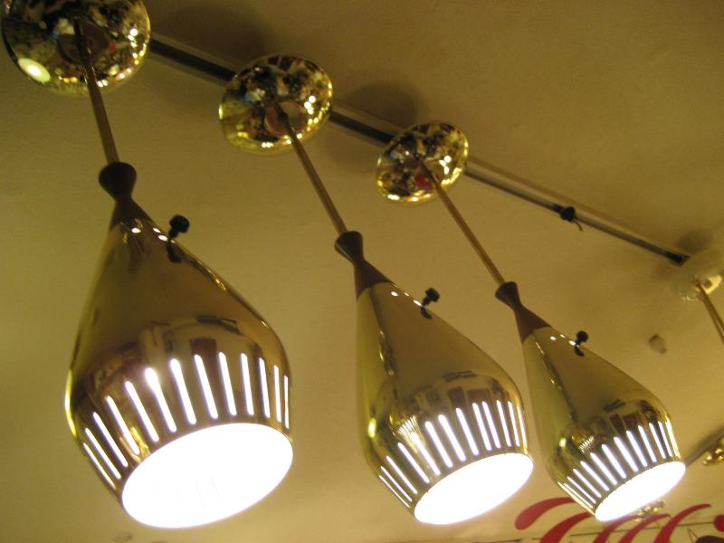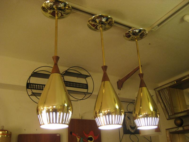| ビンテージアトミックシーリングランプ3pcセット / 50-60年代 USA ゴールドブラスとウッドデコのコンビネーションシーリングランプセットです。ダイニングテーブルやカウンターの照明としても良いですし、それぞれ別なポジションでアクセントランプとしてもGOODなミッドセンチュリーライティングピース! 電源は引っ掛けシーリングに交換済みですのですぐに設置可能ですし、それぞれ単独にスイッチが付いていますのでライティングも自在です。 |
