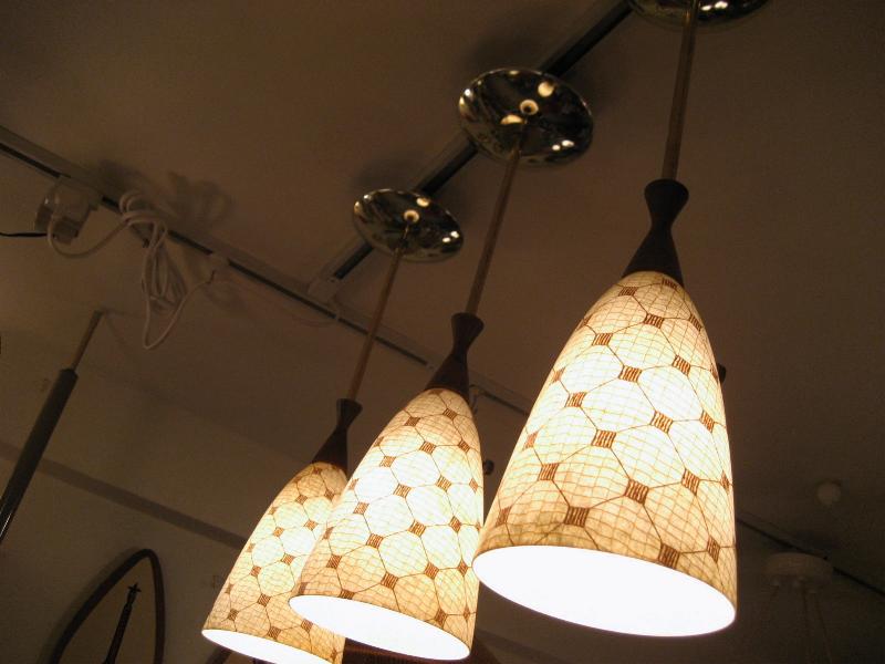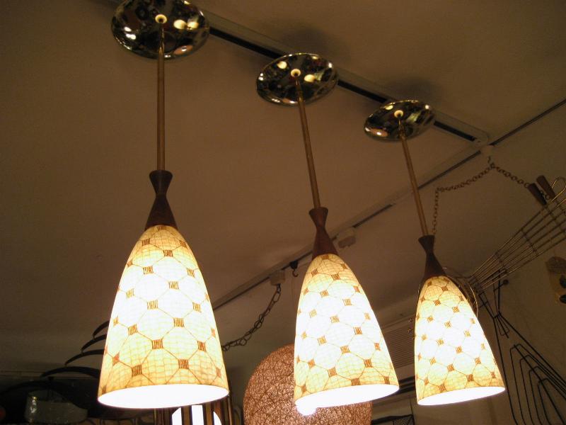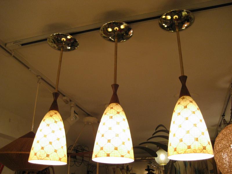 | ビンテージアトミックシーリングランプ3pcセット / 50-60年代 USA アトミック絵柄ファイバーグラスシェードとウッドデコのコンビネーションシーリングランプセットです。ダイニングテーブルやカウンターの照明としても良いですし、それぞれ別なポジションでアクセントランプとしてもGOODなミッドセンチュリーライティングピース!電源は引っ掛けシーリングに交換済みですのですぐに設置可能ですし、それぞれ単独にスイッチが付いていますのでライティングも自在です。 |
