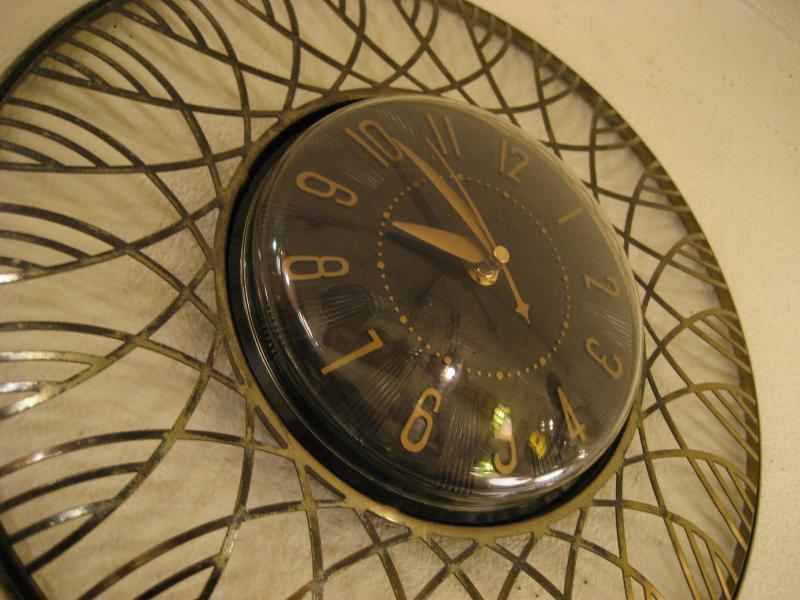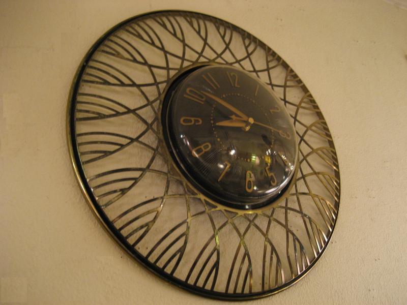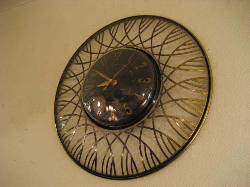 | ビンテージスターバーストウォールクロック / 50-60年代 USA. メタルアトミックフレームにクールな黒文字盤のスペーシークロック。ドームシェイプのフロントカバーがUFOをイメージさせるようなこの時代独特のフォルムがGOODなタイムピース! アトミックなデザインが主流だったサンビーム社製。ムーブメントはバッテリータイプ(単3x1個使用)に交換済みですので時間も正確です。 |