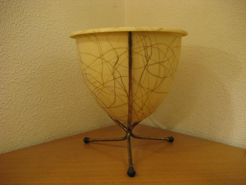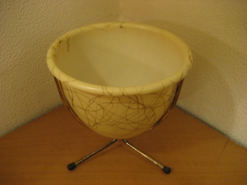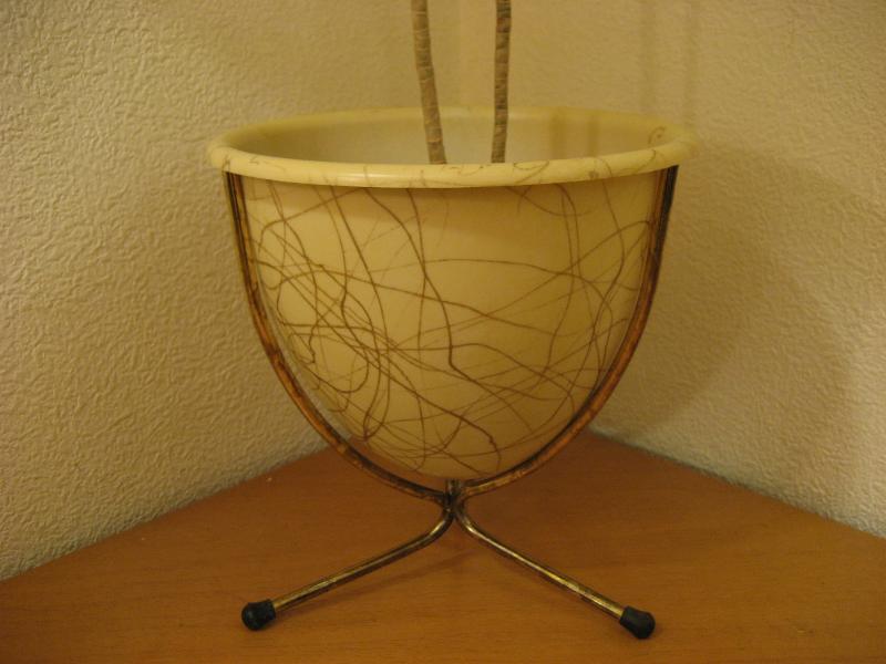 | ビンテージアトミックプランター / 50-60年代 USA. ゴールドブラスフレームスタンドにプラスティックポット。ポットの柄はアイボリーベースにゴールドのアトミック絵柄。ディスプレイにGOODなミッドセンチュリーピース! |