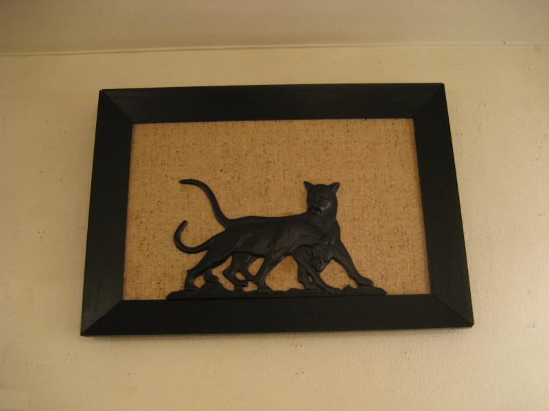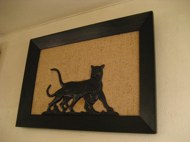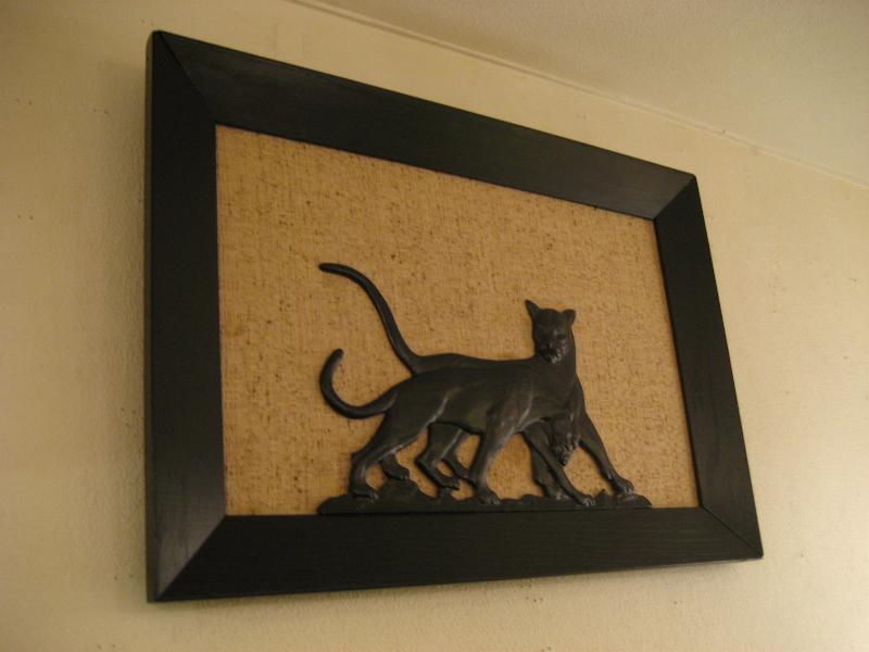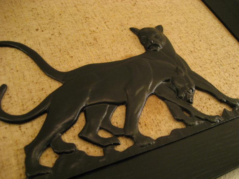 | ビンテージブラックパンサーウォールデコ 50年代 CORNELL社製 USA. ウッドフレームにメタルメイドのブラックパンサーの壁掛けです。2匹のパンサーが戯れているポーズでパネルにネジ止めされています。レアでクールなウォールデコレーションピース! |