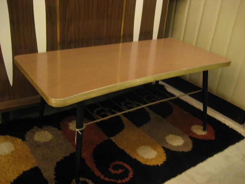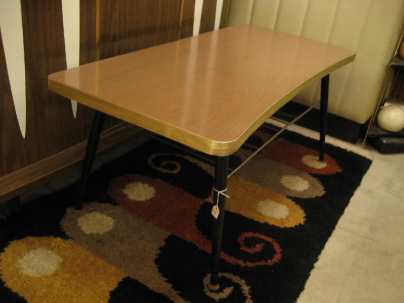 | ミッドセンチュリーモダンテーブル / 50-60年代 USA. 片側ブーメランシェイプのビンテージコーヒーテーブルです。シックなブラウンカラー化粧合板トップにゴールドのエッジモール、ブラックアイアンレッグ、天板下にマガジンシェルフ付き。リビングにGOODなフロアピース! |