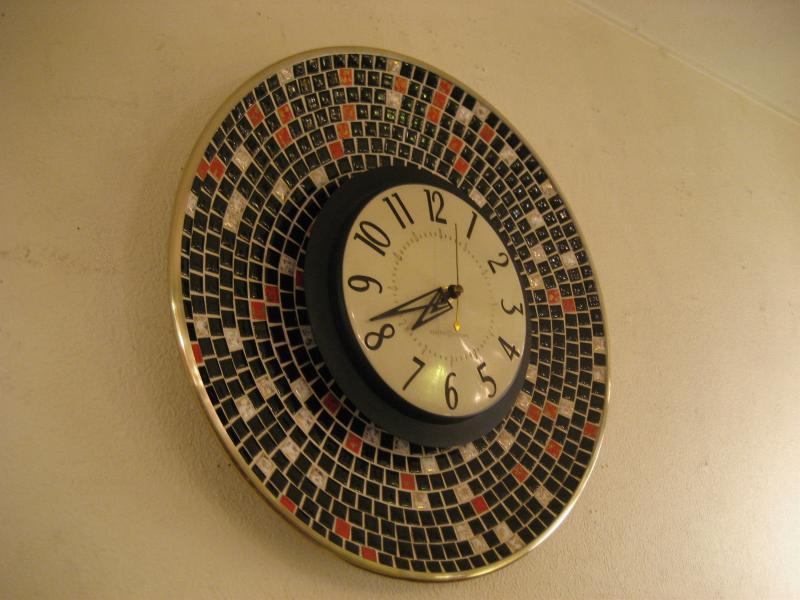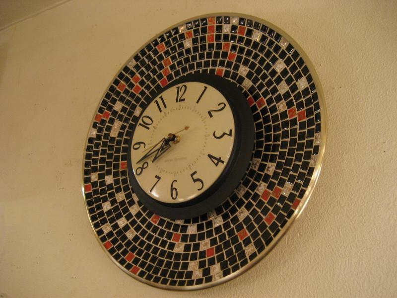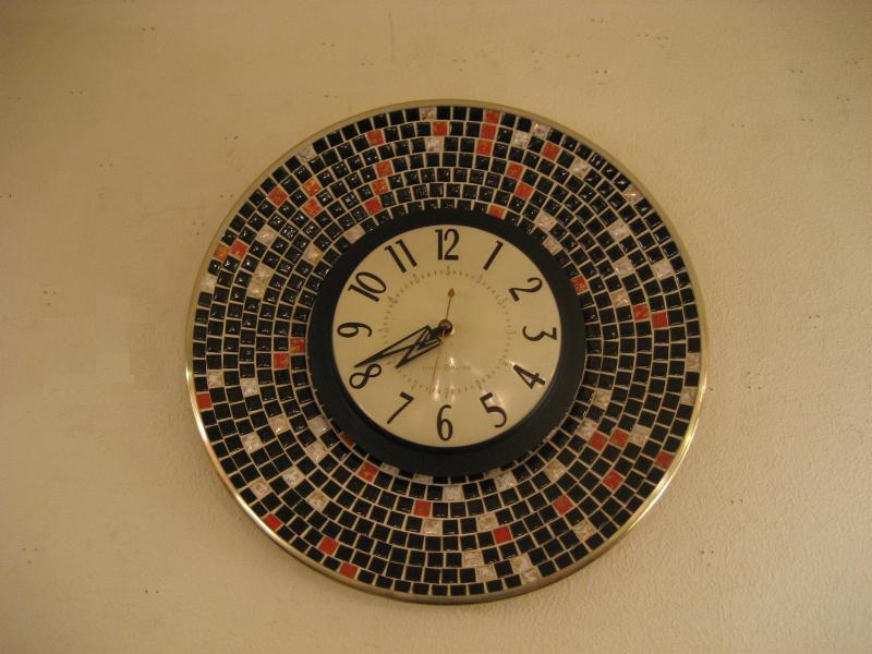 IN USA. リアルタイルが敷き詰められたバックパネルベースのビンテージGE社製壁掛け時計です。クール&キュートなGOODウォールタイムピース! ムーブメントはバッテリー式(単3x1コ使用)に交換済ですので時間は正確です。 |