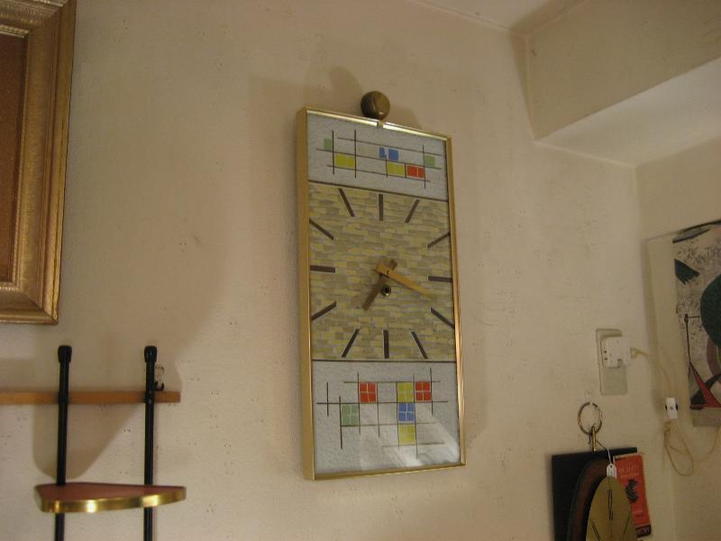 | ビンテージアトミックウォールクロック / 50-60年代 ターナーウォールアクセサリー社 USA. シャドウボックスやウォールデコなど壁装飾アイテム専門の老舗メーカー、ターナー社のビンテージ壁掛け時計。ゴールドメタルフレームにフロントガラスパネル、バックグラウンドはレンガやタイルなどのモチーフデザイン。キュートでモダンなGOODタイムピース! ムーブメントはバッテリー式(単3x1コ使用)に交換済ですので時間は正確です。 |