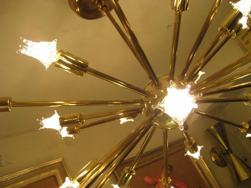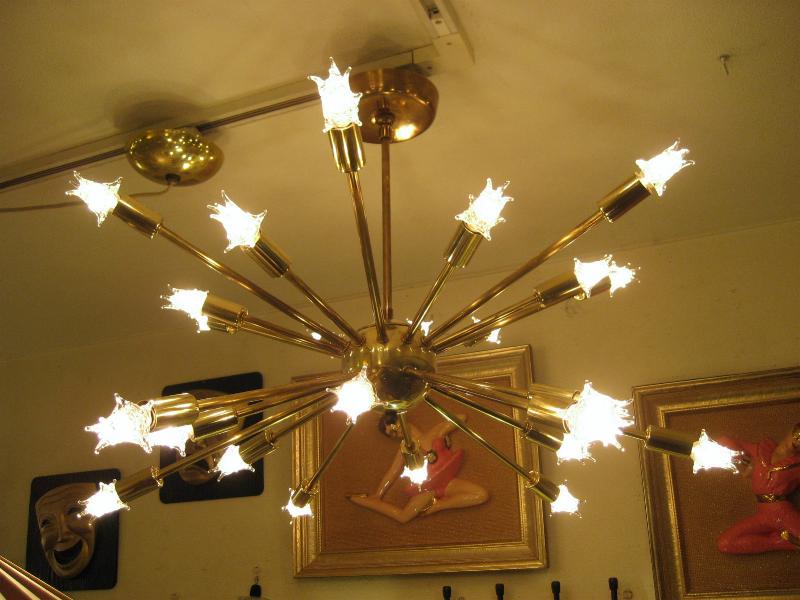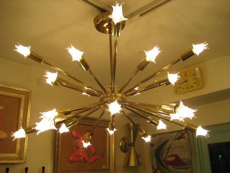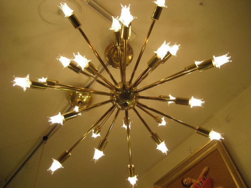 | ビンテージスプートニクランプ 50年代 USA. 24灯タイプ (スター球24個付き) ビンテージスプートニクシーリングランプ / シャンデリア 24発のレアスプートニクです。クールでGOODなスーパーライティングピース、お部屋の雰囲気一発で変わります! 電源は家庭用引っ掛けシーリングに交換済ですのでかんたん設置、すぐに使用できます。 ※スター球は現行品です。 |