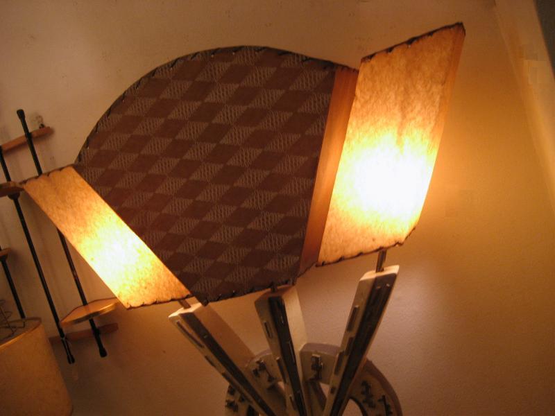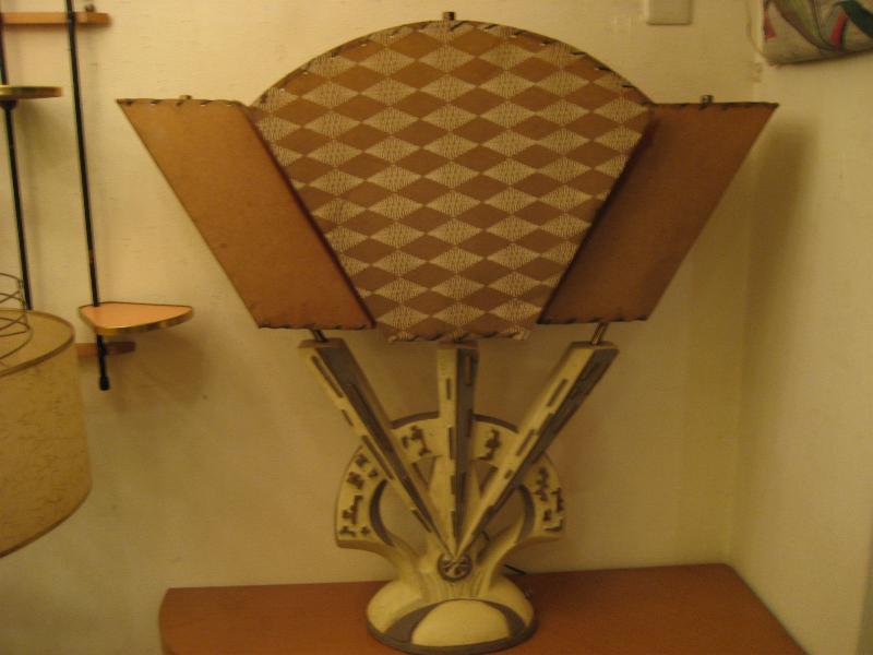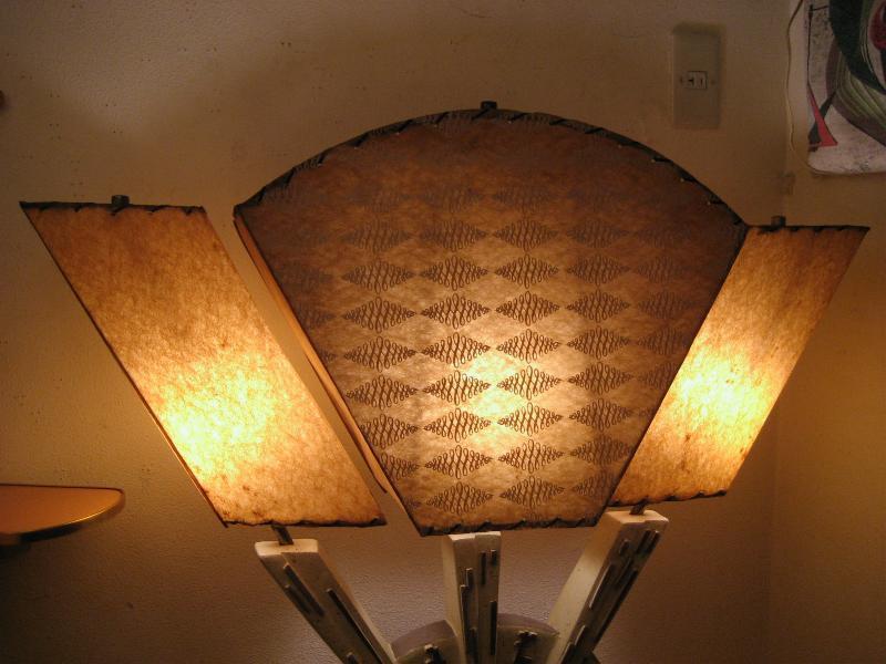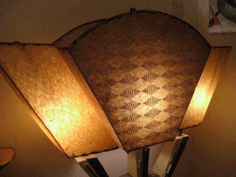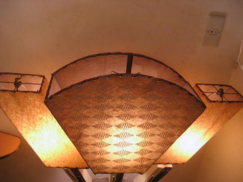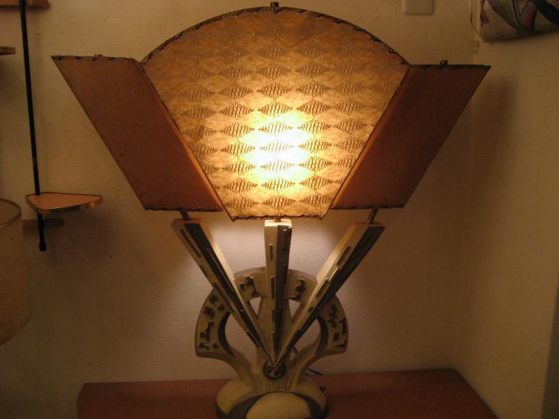 | アトミックビンテージトリプルシェードランプ / 50年代 USA. 3シェードのビンテージランプ。シェードはファイバーグラスメイドでレアなアトミックシェイプ&絵柄。ベースはチョーク製でずっしりと重量感のあるタイプ。スーパークールなライティングピース! 電源は家庭用コンセント対応コード、スイッチはベースに付いていてロータリー式3Wayタイプ。 |