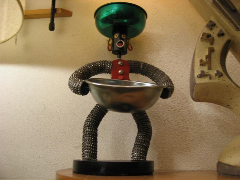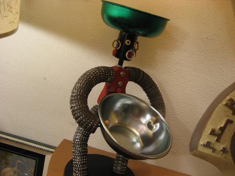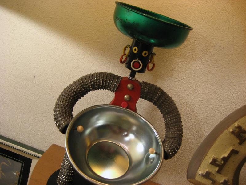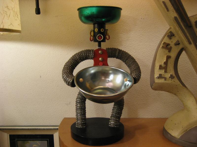 | ビンテージ置物/灰皿/小物入れ / 50年代 USA. 頭の上とフロントにメタルトレイ付きのシェルフデコ。ウッドボディと王冠でできています。顔部分に注目してください。。。なんとイエローとレッドのダブルイヤリング! ディスプレイや鍵・小銭など小物入れにGOODなデコレーションピース! |