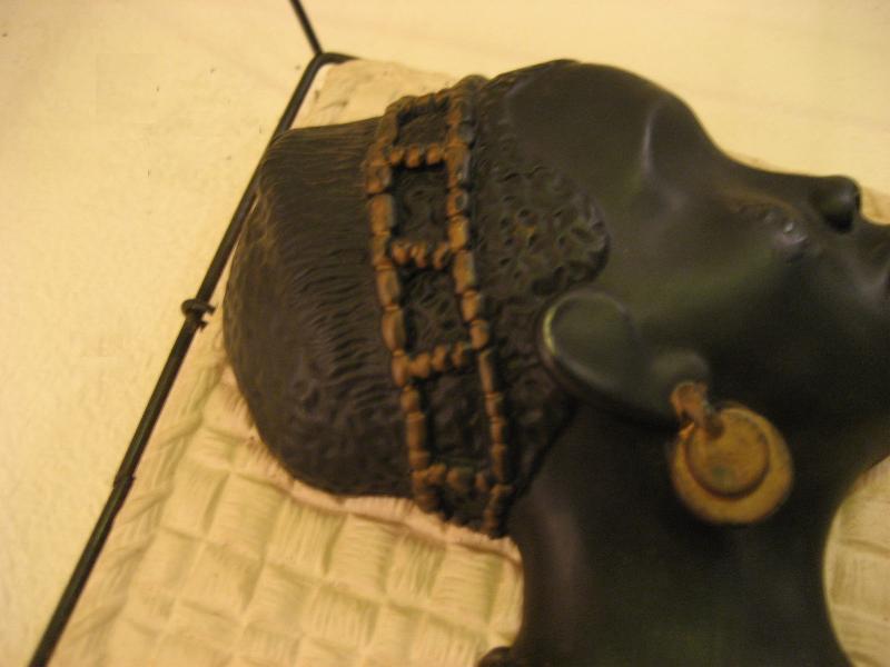 USA. ブラックワイヤーのスクエアフレームにチョーク製アフリカンヘッドのビンテージデコ。オフホワイトのスクエアベースにブラックフェイス&ゴールドアクセントカラー。クールでGOODなビンテージウォールデコレーションピース! |