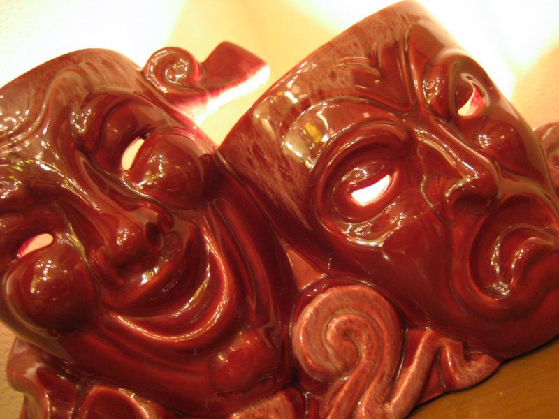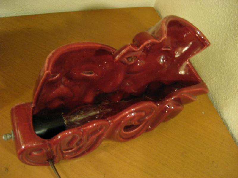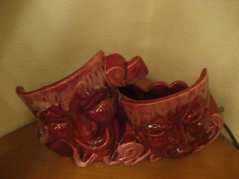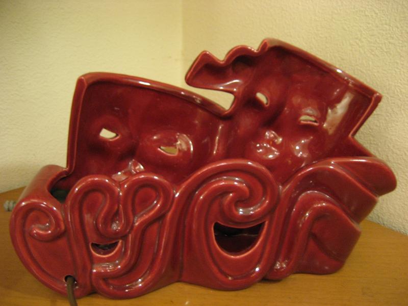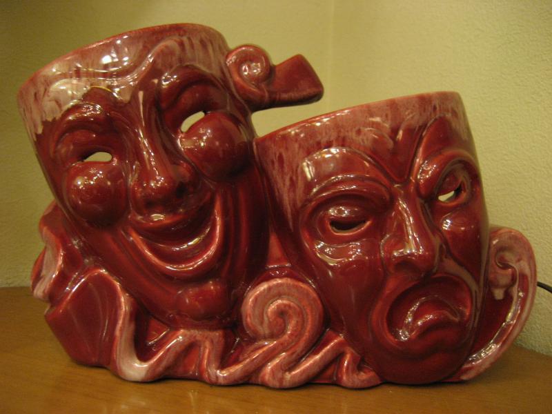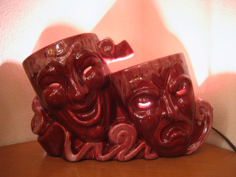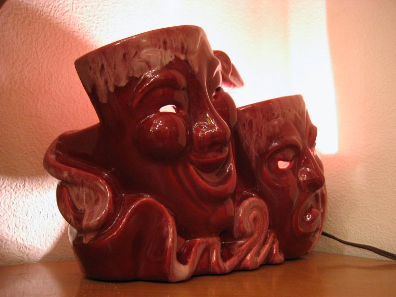 | ビンテージツーフェイスTVランプ / 50年代 USA. 陶器製の泣き笑いTVランプ。カラーは珍しいダークレッドにアイボリーのドレーピングアクセント。飾りとしてもアクセントランプとしてもクールなディスプレイ&ライティングピース! 電源は家庭用コンセント対応コードで、スイッチはランプソケット部分に付いています。 |