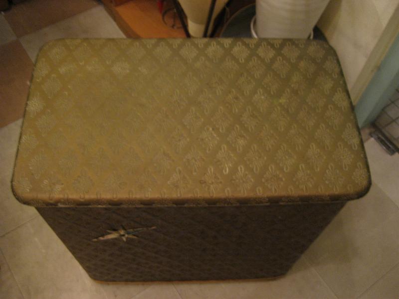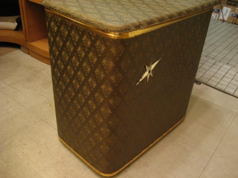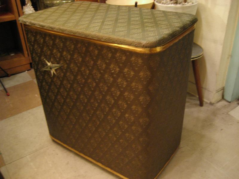 | アトミックビンテージハンパー / 50年代 USA 落ち着いた色合いのカーキベースにゴールドメタルスターバーストアクセントのクールハンパー(洗濯物入れ)です。実際に洗濯物入れとして使っても良し、テレフォンチェアなどにも良いですよ。洗濯するのが楽しくなるGOODランドリーピースです! |
