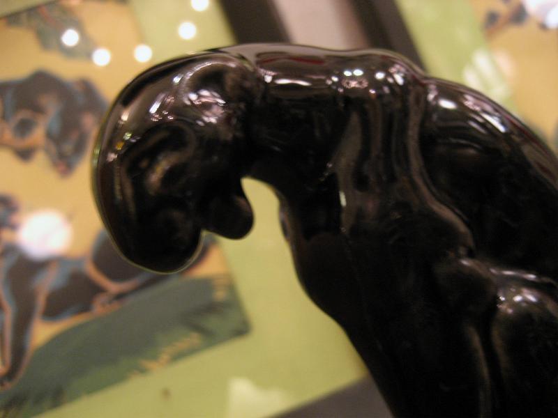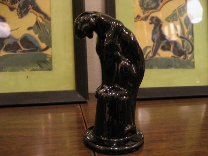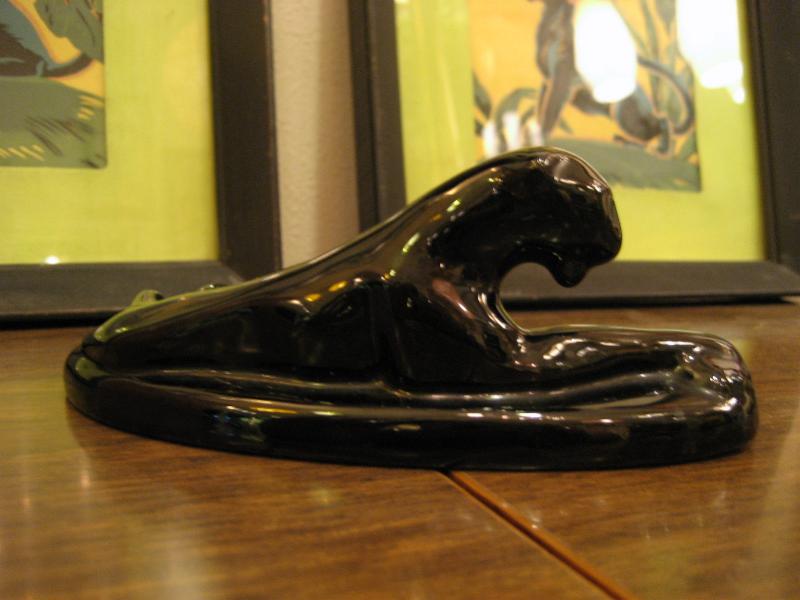 | ビンテージブラックパンサー置物 / 50年代 USA. 【 A 】・【 B 】 2タイプ陶器製の黒豹置物。岩の上に座っている縦型タイプ(A)と寝そべっているブーメランタイプ(B)。シェルフやテーブルなどにクールな50'sディスプレイピース! |