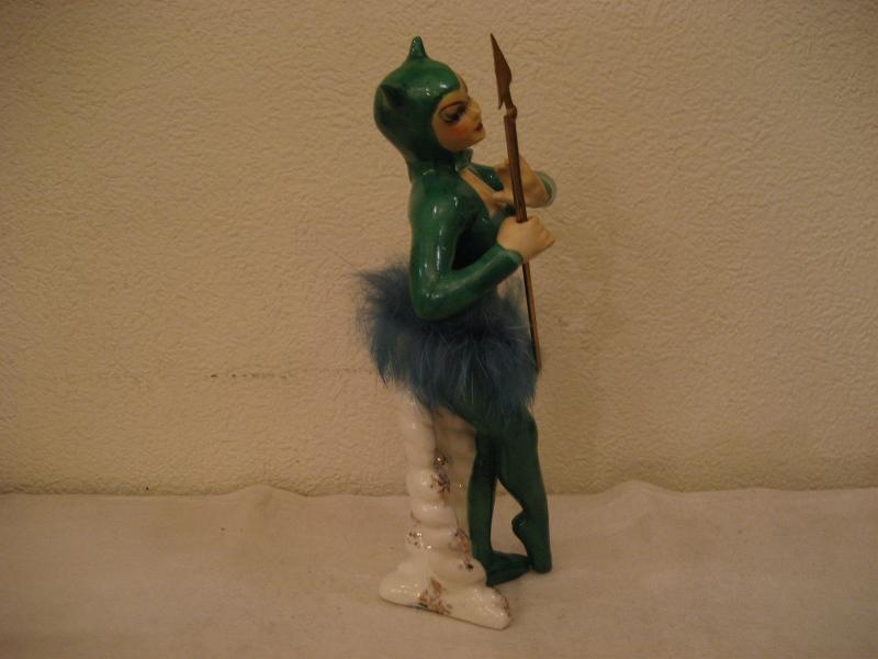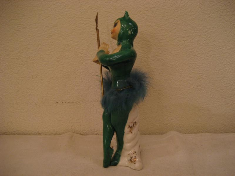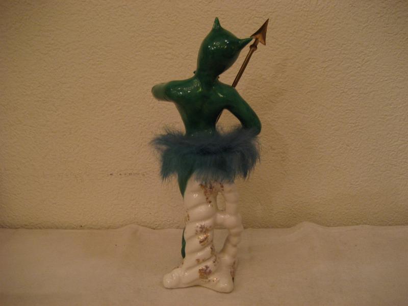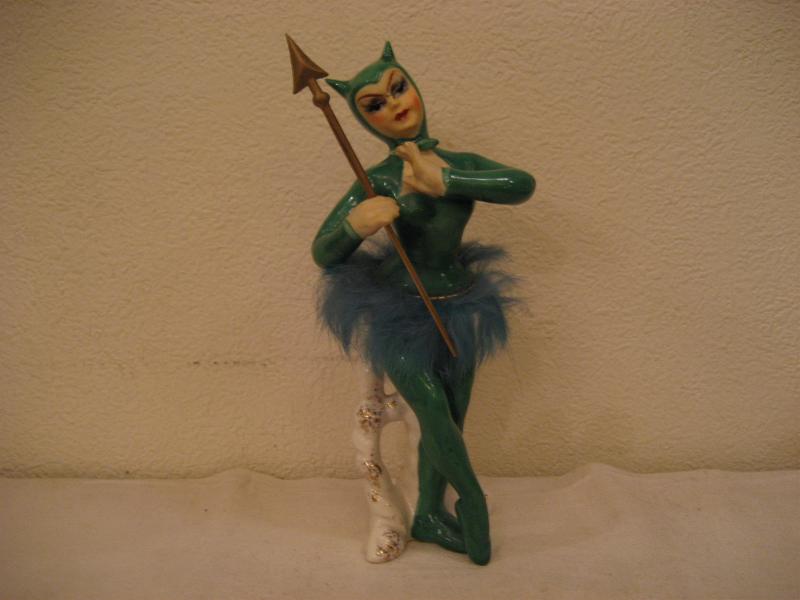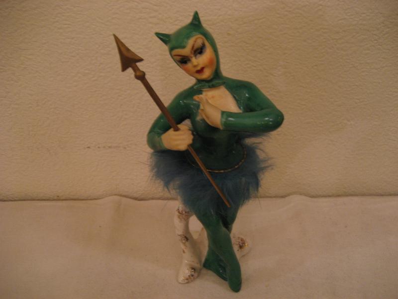 | ビンテージデビル置物 / 40-50年代 USA レアなグリーンカラーの陶器製デビルレディ置物です。手にはヤリ、ウェストには同色ファー付。クールな顔立ちがGOODなビンテージコレクティブルピース! |