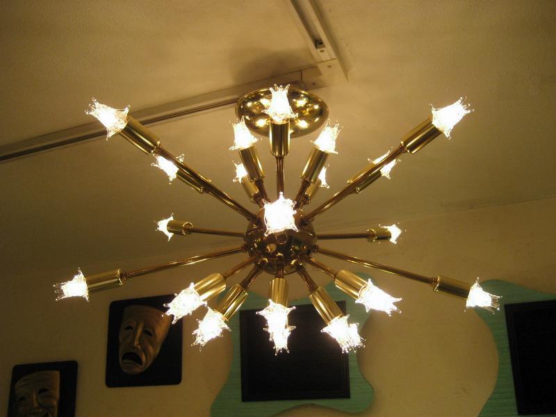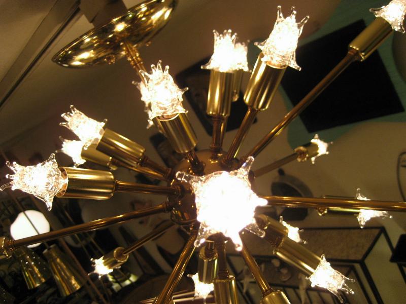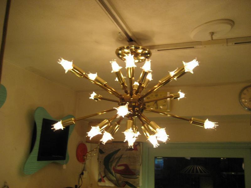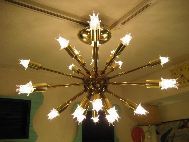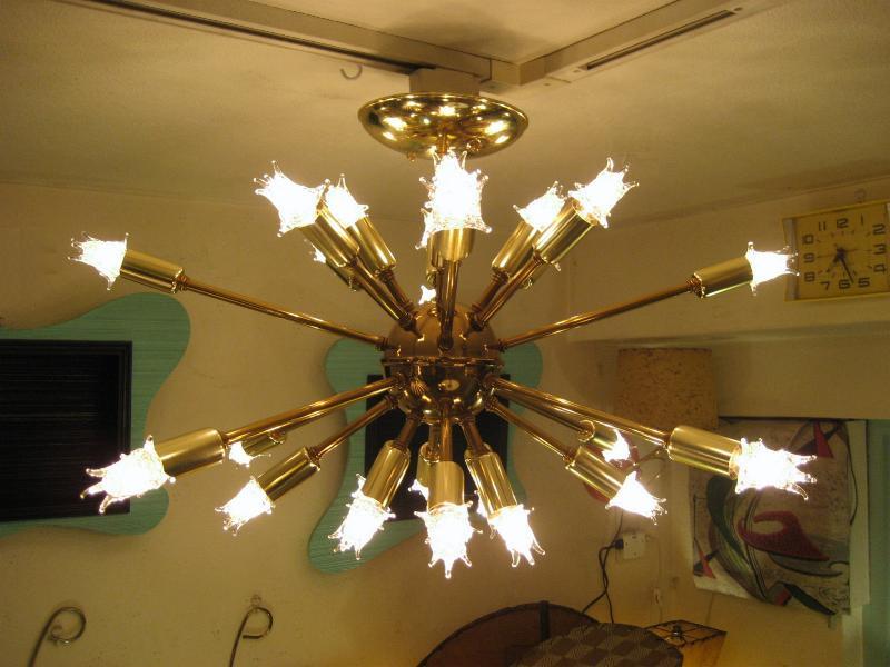 | ビンテージスプートニクランプ 50年代 USA. 24灯タイプ (スター球24個付き) ビンテージスプートニクシーリングランプ / シャンデリア 24発のレアスプートニクです。クールでGOODなスーパーライティングピース、お部屋の雰囲気一発で変わります! 電源は家庭用引っ掛けシーリングに交換済ですのでかんたん設置、すぐに使用できます。 ※スター球は現行品です。 |