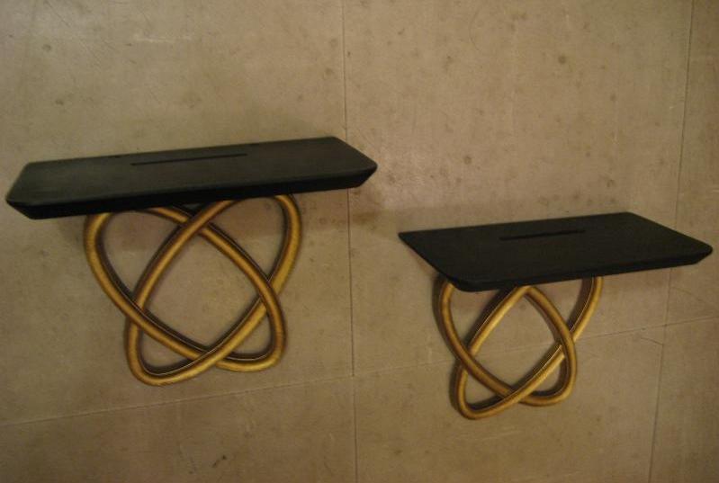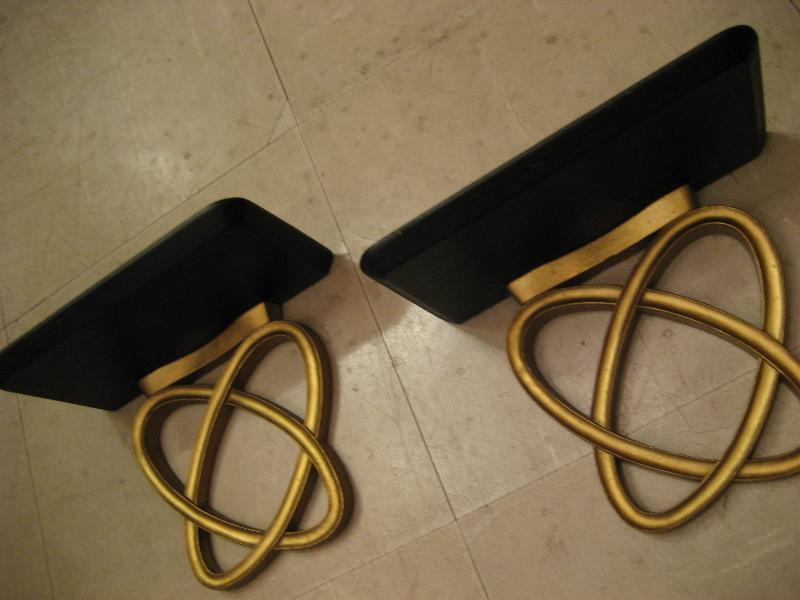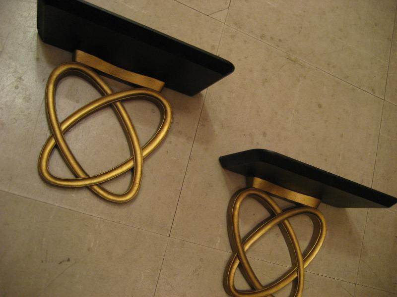 | ペアアトミックウォールシェルフ / 50年代 USA WOODメイドのアトミックモチーフデコレーションがクールなウォールシェルフセット。ブラックxゴールドのツートーンがベストマッチで置物などのディスプレイにGOODなアトミックウォールピース! |