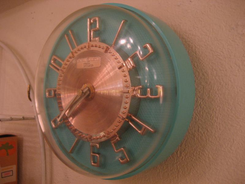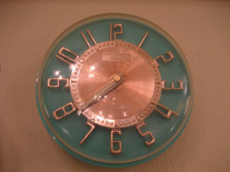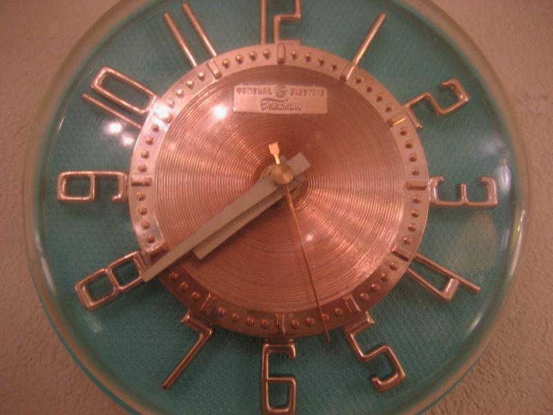 IN USA. GEのアトミック壁掛け時計。ミントグリーンのボディカラーにゴールドの文字盤と3Dダイヤル、ホワイトハンドでゴールドの秒針がクールなビンテージタイムピース! ムーブメントはバッテリータイプ(単3x1個使用)に交換済みでですので時間は正確です。 |