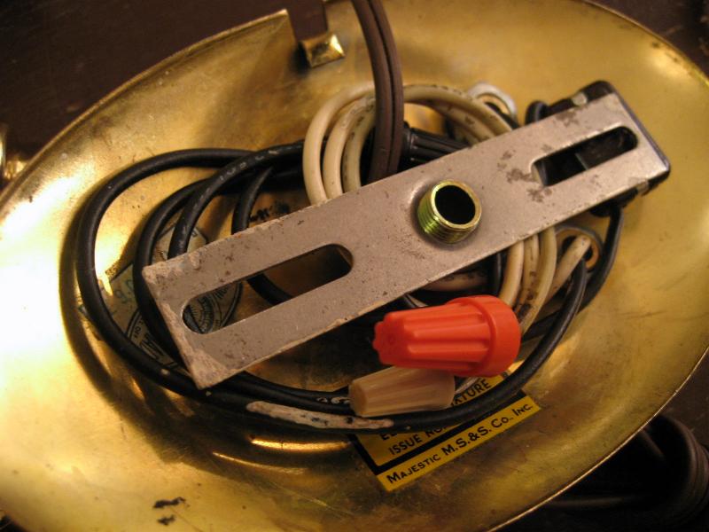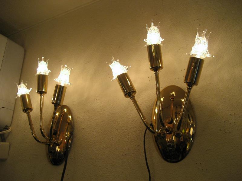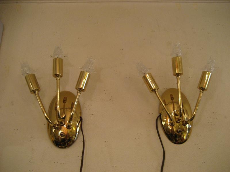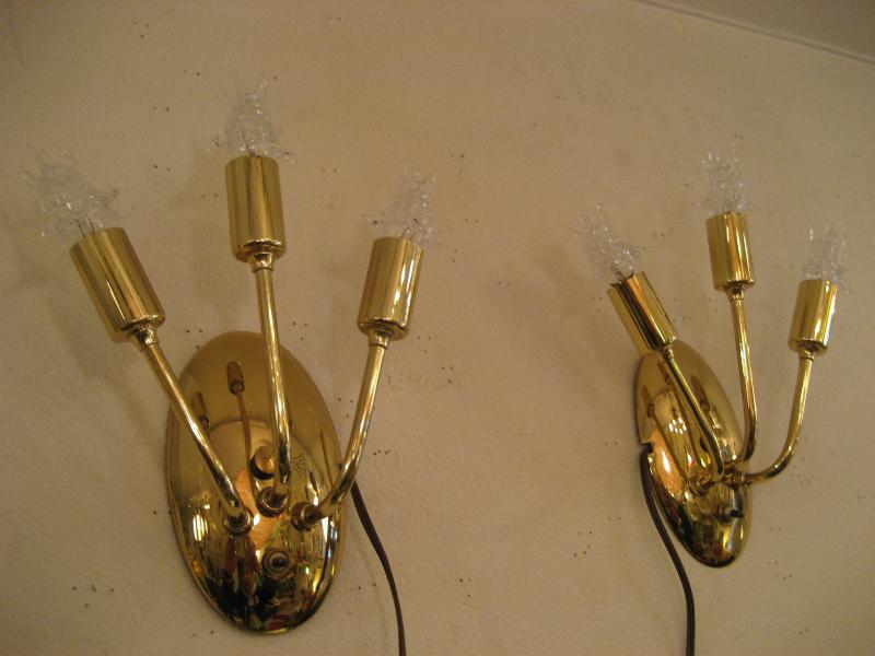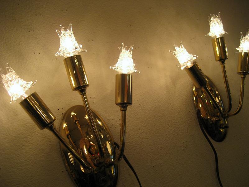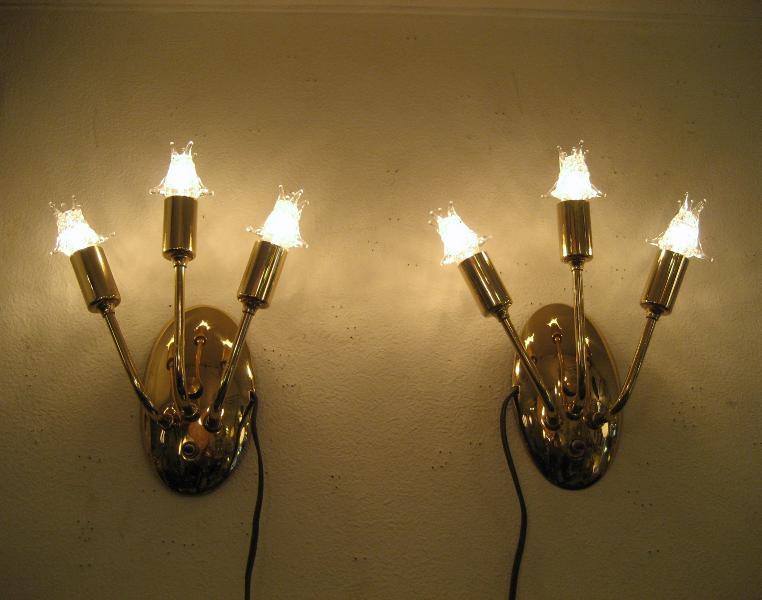 | ペアビンテージスプートニクウォールランプ 50年代 MAJESTIC社製 USA. (スター球6個付き) ビンテージスプートニクランプ / レアなペアスプートニク壁掛け用ランプです。オーバル(楕円)シェイプのウォールマウントベースから扇状に3本のアームが出ているタイプ。クールでGOODなスーパーライティングピース。お部屋の雰囲気一発で変わります! 電源は家庭用コンセント対応コードでスイッチはマウントベースに付いていてプッシュタイプです。 ※スター球は現行品です。 |