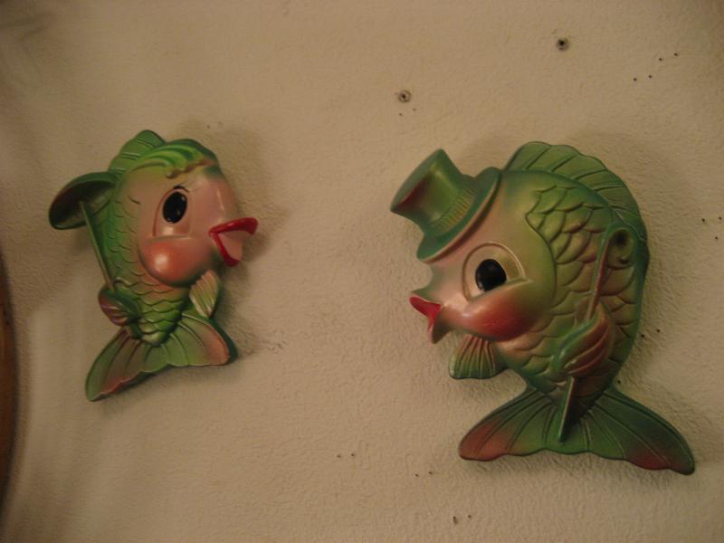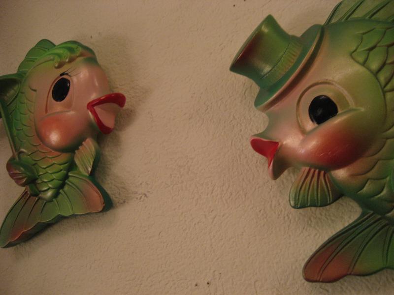 | ビンテージペアフィッシュウォールデコ / 60年代 USA ミラースタジオ社 ©1969 チョーク製のサカナの壁掛けセットです。グリーンベースのキュートカラーで女の子と男の子のペア。キッチンやバスルーム、KIDSルームなどにもGOODなウォールデコレーションピース! |