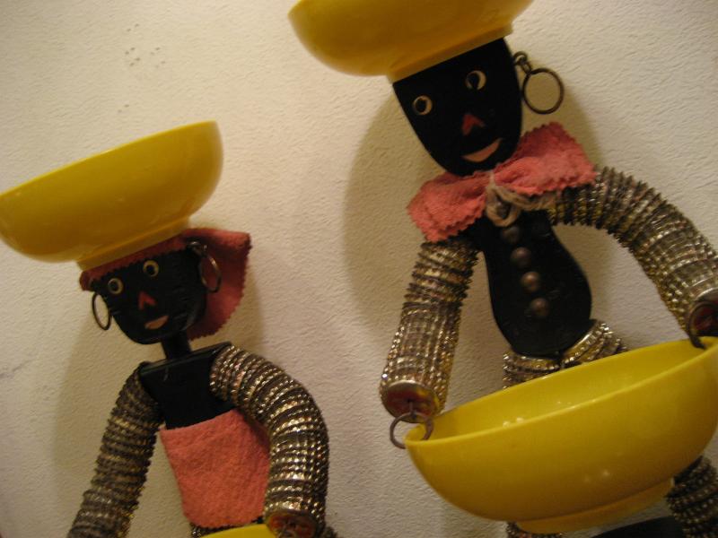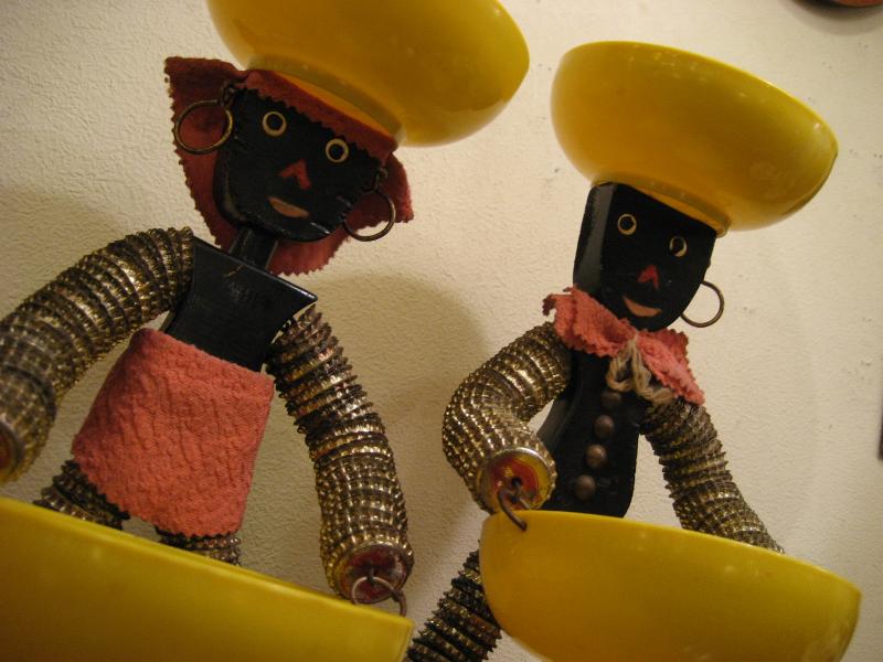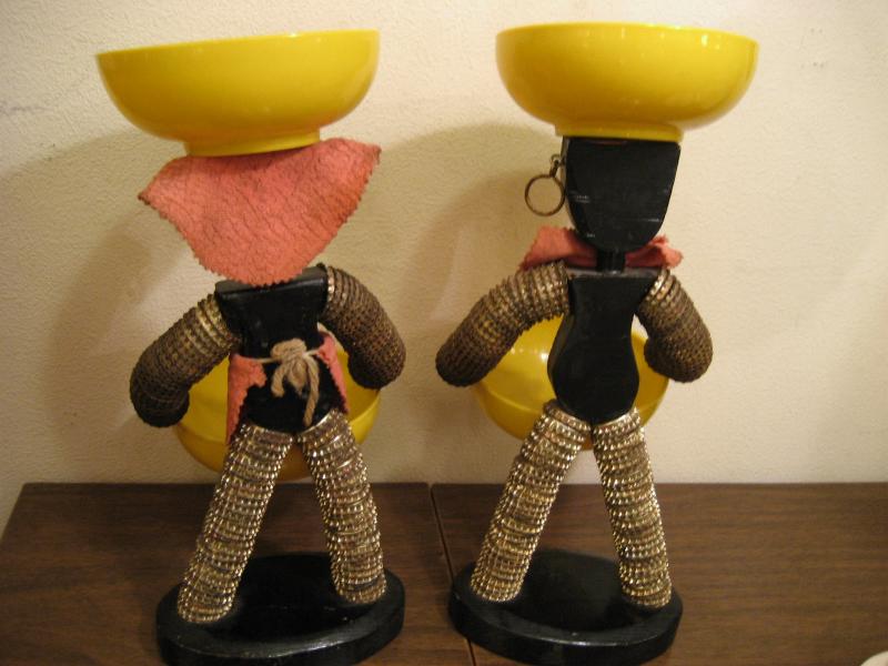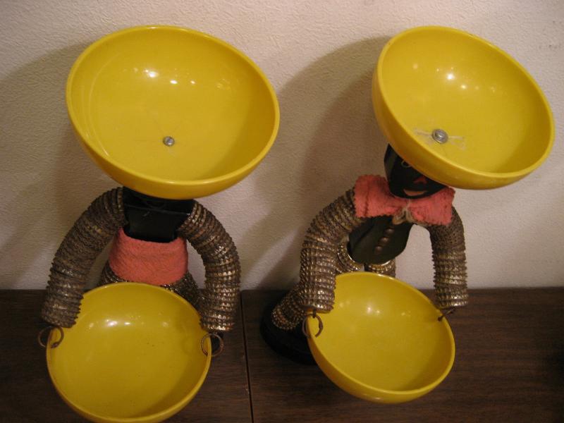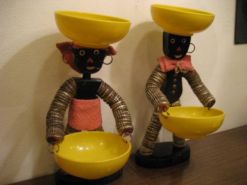 | ビンテージペア置物/灰皿/小物入れ / 50年代 USA. 頭の上とフロントにトレイ付きシェルフデコの男女ペア。ウッドボディと王冠でできています。男性の方は元々イヤリングが片方だけです。ディスプレイやKEY・小銭など小物入れにGOODなデコレーションピース! |