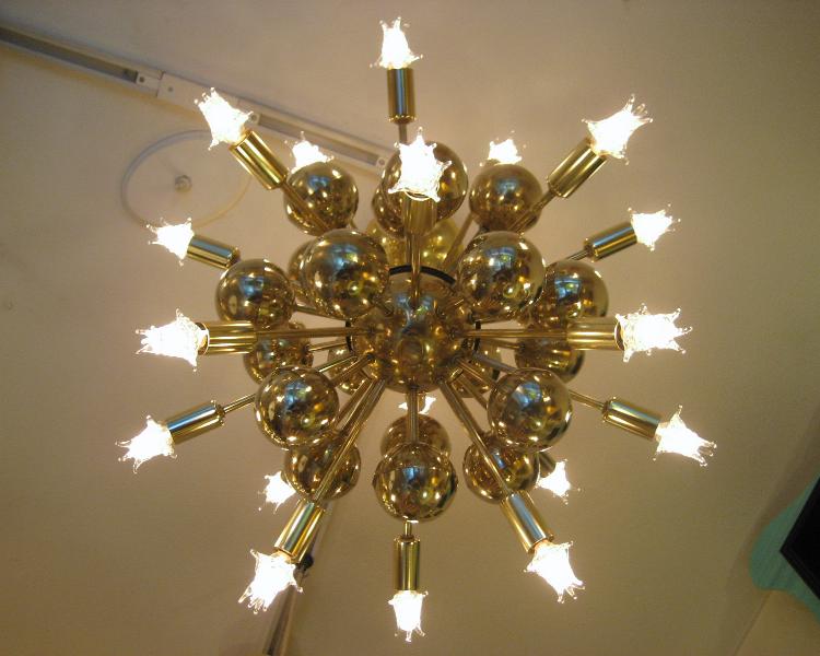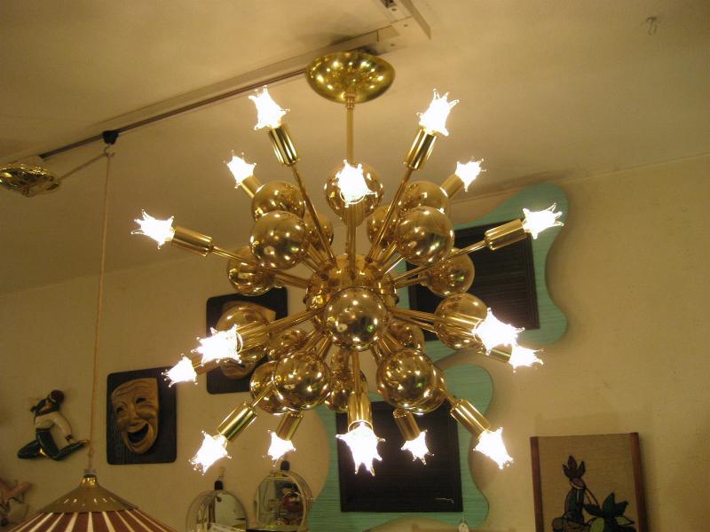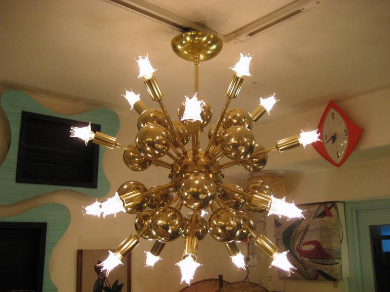 | ビンテージスプートニクランプ 50-60年代 USA. 20灯タイプ (スター球20個付き) ランプソケットアーム20発とボールデコアーム20発で合計40発のスーパーアトミックスプートニクです。クールでGOODなビンテージライティングピースですからお部屋の雰囲気一発で変わります! 電源は家庭用引っ掛けシーリングに交換済ですのでかんたん設置、すぐに使用できます。 ※スター球は現行品です。 |