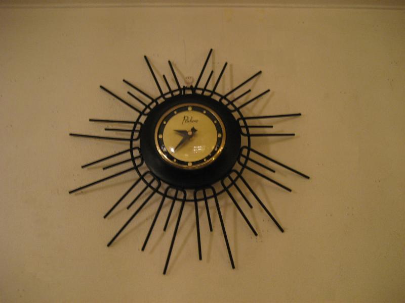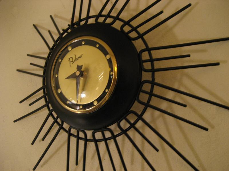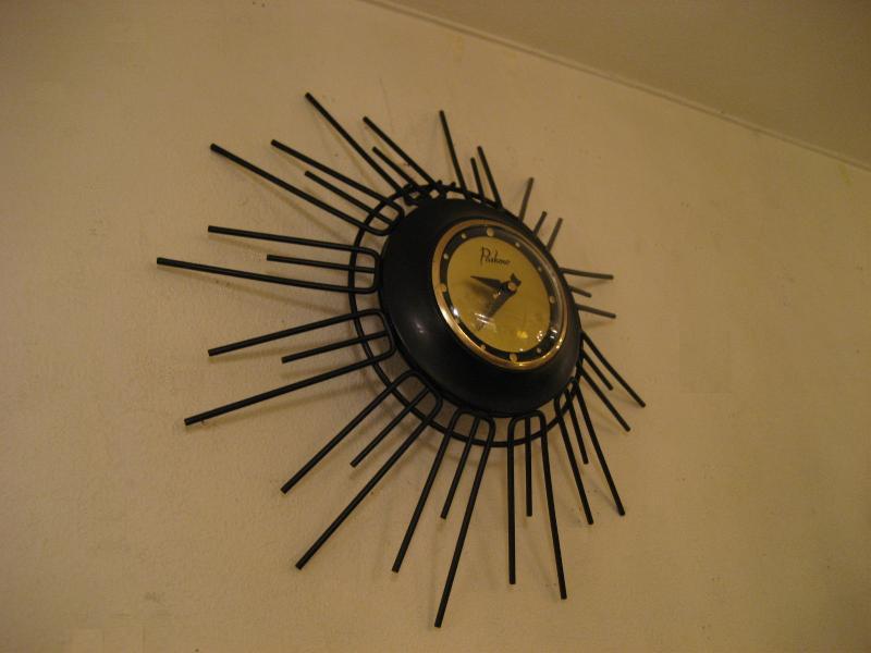 | アトミックスターバーストウォールクロック / 50年代 USA. アイアンメイドのスターバースト壁掛け時計。フレームは長さの違うブラックスポークが広がったスプートニクシェイプ。クールでGOODなアトミックタイムピース! ムーブメントはバッテリータイプ(単3x1個使用)に交換済みですので時間も正確です。 |